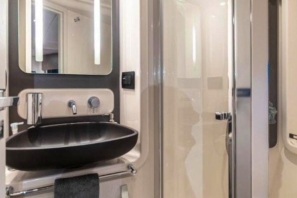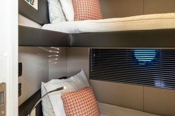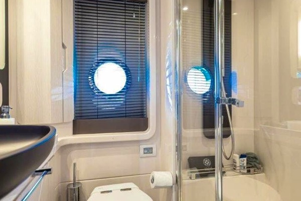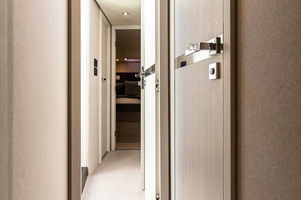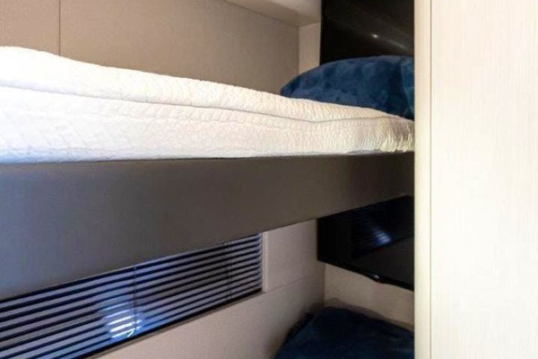 The yacht’s comfortable, spacious master suite is located below deck and features a relaxing, welcoming ambiance. Striking décor, matte bronze touches and rounded furnishings further enhance the space that is styled somewhere between a boutique hotel and a home-away-from-home oasis. Two additional guest staterooms, which are spacious, well-appointed and beautifully styled, and accommodations for crew also are available aboard BLESSED.