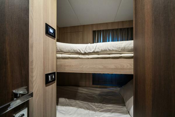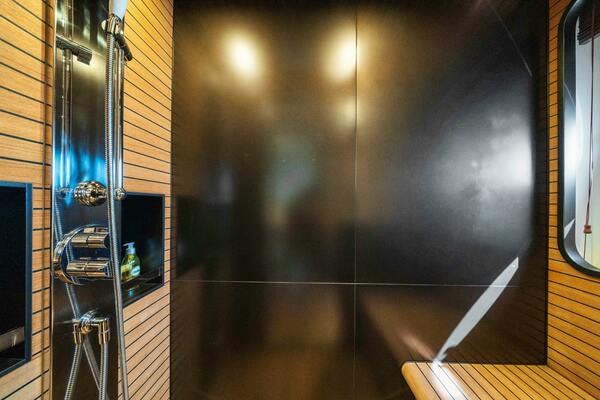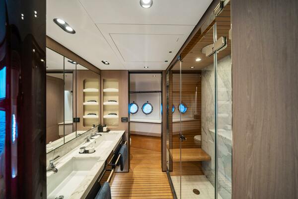 Galley- Located on port side, the access is through concealed sliding door located forward of the pantry. This layout allows full isolation of this area from the saloon and dining area reserved for the owner and his guests.