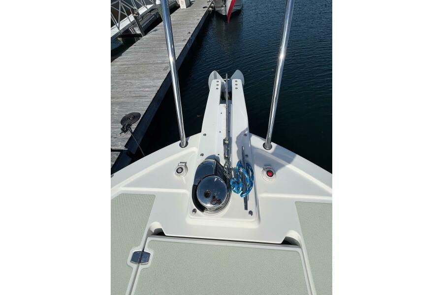 - Electric anchor windlass w/control at helm & foot switches on deck