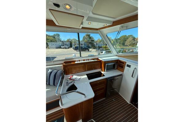 Up top, the salon offers generous seating, 360-degree visibility, and seamless flow to the cockpit through swing bi-fold doors. With elegant finishes and thoughtful design throughout, the 37 is built for extended time on the water without compromise.