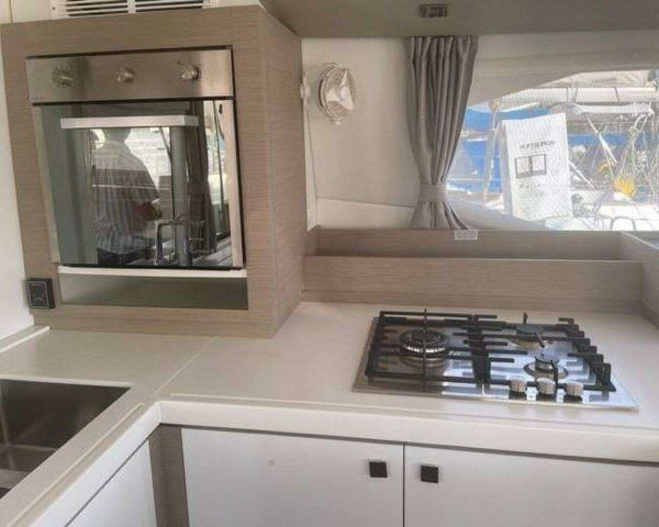 - Galley sink has saltwater, freshwater and remineralized faucets