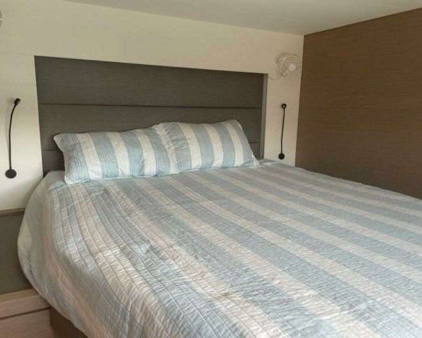 - Custom upgraded Sunbrella cushions at helm upper deck and cockpit