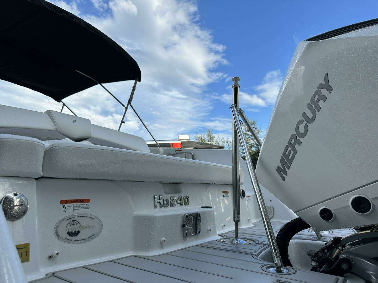 Introducing the 2020 Four Winns HD240 OB, a remarkable deck boat that combines style and performance. With an overall length of approximately 24.3 feet, this vessel is designed for both comfort and agility on the water.