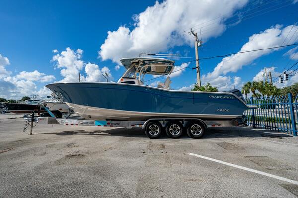 The 326 Grady-White Canyon combines all the benefits of the nimble and easy-to-handle 306, with the rugged, roomy, and beefier 336. With the 2020 326 Canyon’s aggressive, next-generation hull design, ample room for entertaining guests, or your workaholic fishing buddies, this Carolina sportfisher is the perfect partner. The just-right feel of the Grady-White 326 Canyon gives you the range and the confidence to get there and back – wherever “there” might be – in dry comfort and style.