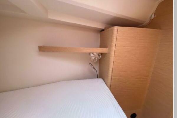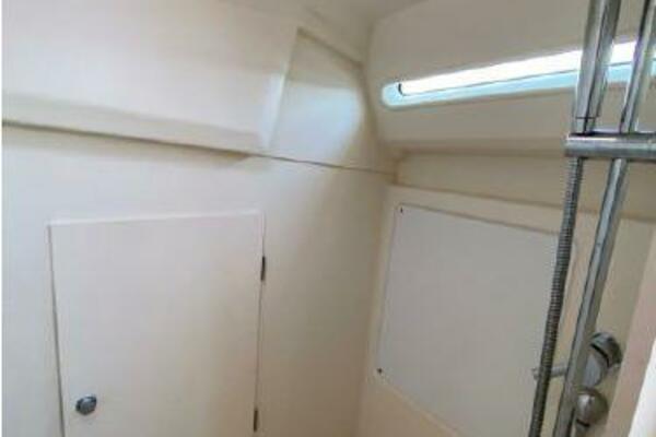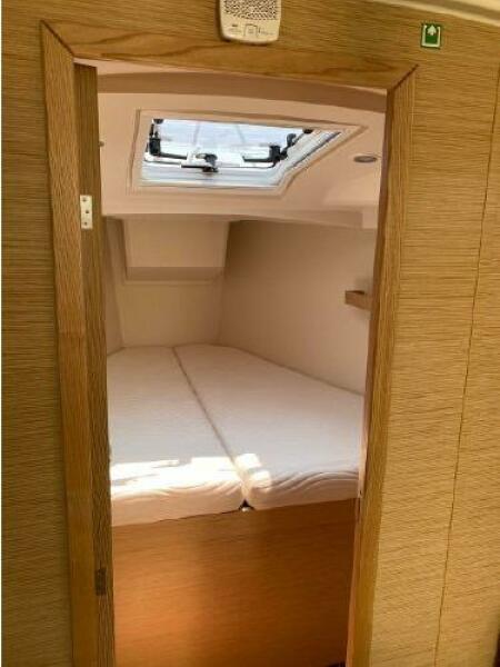 - C1: Aft cabin with door, large double berth and storage space on stb and separate head with shower on port
