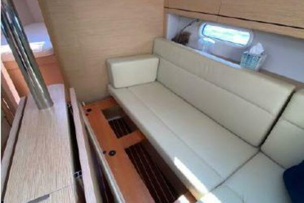 - B1: Saloon with L-galley, dining area on stb and sofa on port