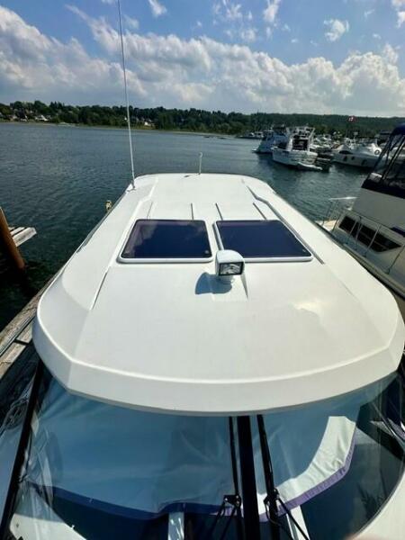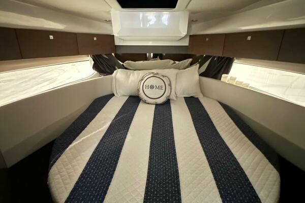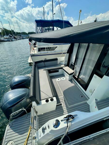 HEATED STORAGE PAID BOW THRUSTER GARMIN ELECTRONICS PACKAGE TWIN YAMAHA 300 HP FOUR STROKE OUTBOARDS 6.4 KW PANDA GENERTATOR 3 STATEROOM LAYOUT AFT 3 PANEL SLIDING DOOR LATERAL BOARDING GATE REVERSE AIR/HEAT SEPARATE SHOWER Boat is being detailed this week and new pics will follow HST Applicable