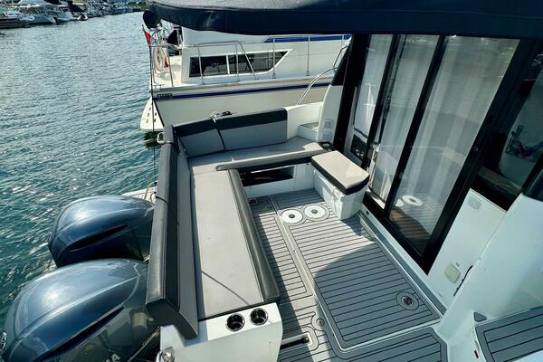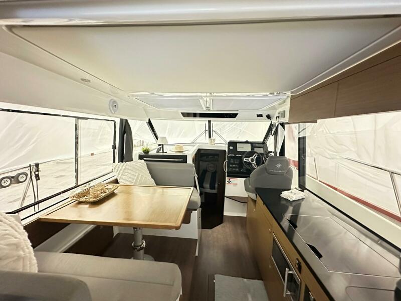 Three cabins are available, each with large windows in the hull, and notably, the generous owner's cabin is equipped with copious storage. The vast saloon converts in just a few seconds into an additional double berth. The very practical galley features a burner and a sink with a countertop, enabling you to enjoy dining on board. From the bright, well-ventilated wheelhouse, you are just a few easy steps away from the vast cockpit saloon and the promise of exceptional moments in dream locations. The NC 1095 Coupe is a boat de-signed for sharing the pleasures of life on the water.