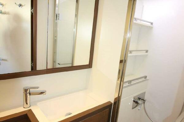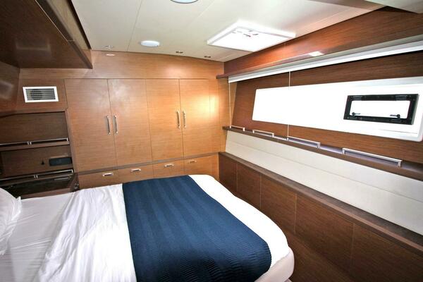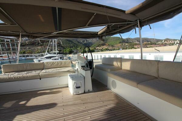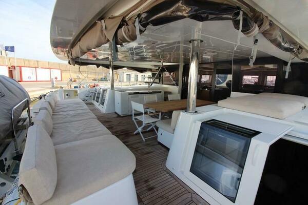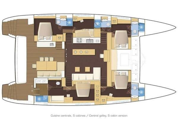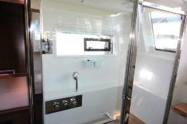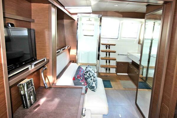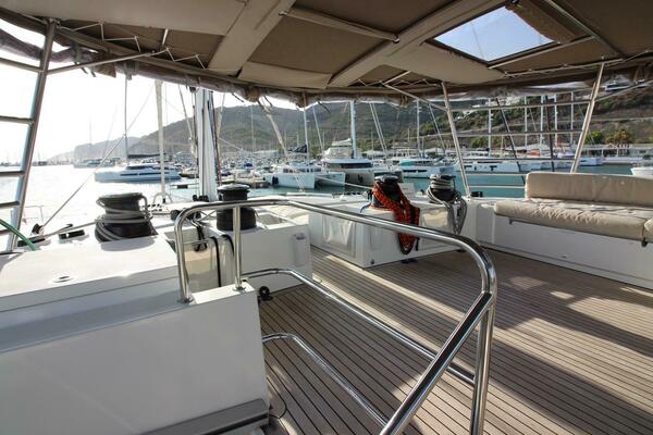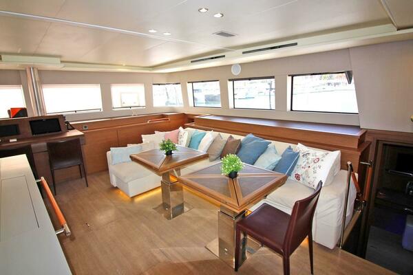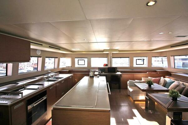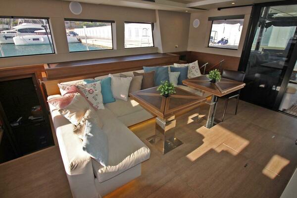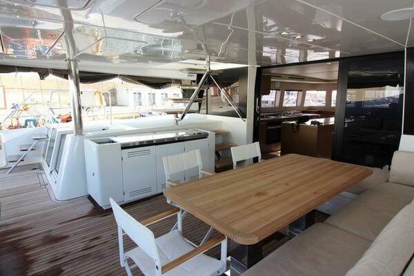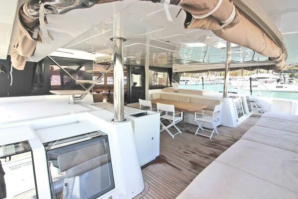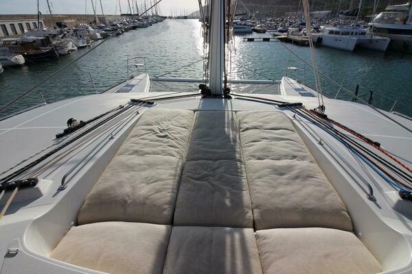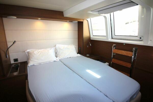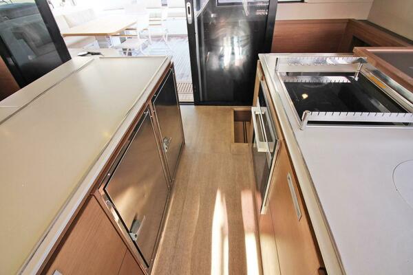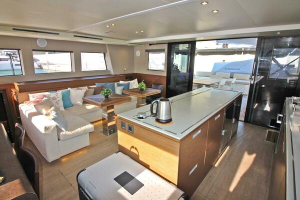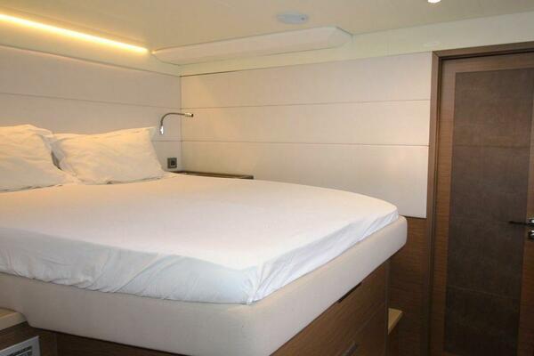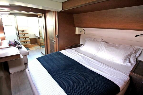 This yacht is a highly sought-after Essence version featuring the central galley layout in the saloon, a spacious owner’s suite and VIP guest cabin in the starboard hull, three guest cabins to port, and an additional crew cabin in the forepeak. A hydraulic swim platform/tender lift adds a touch of luxury and convenience for swimmers and divers.