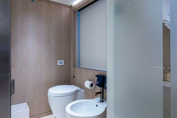 Modern bathroom with toilet and bidet on Majesty 140 yacht, 2020 model.