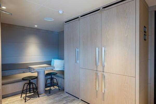 For the dedicated crew on board, the Majesty 140 provides an environment that is as comfortable as it is efficient. Three crew rooms located in the bow area can accommodate up to six crew members, while an additional two crew rooms in the aft area bring the total crew capacity to nine. Gulf Craft has taken special care to ensure that the crew enjoys a high level of comfort and privacy, allowing them to provide exceptional service throughout the voyage.
