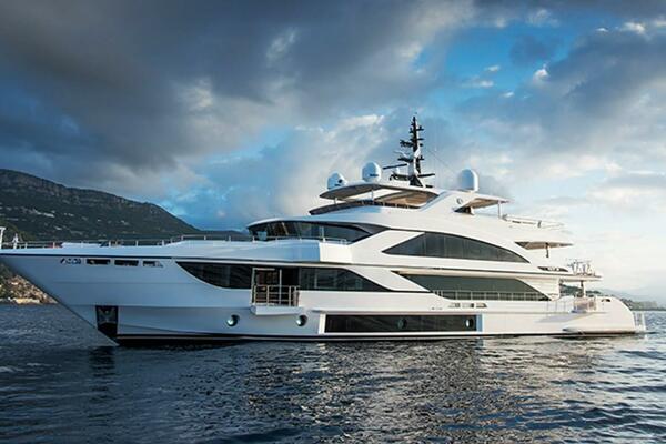 Luxury Majesty 140 yacht cruising on open sea, 2020 model.