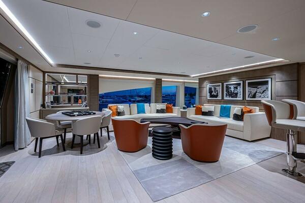 Luxurious 2020 Majesty 140 yacht interior with elegant seating and modern decor.