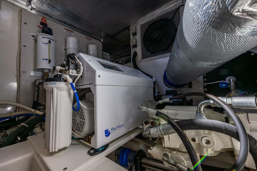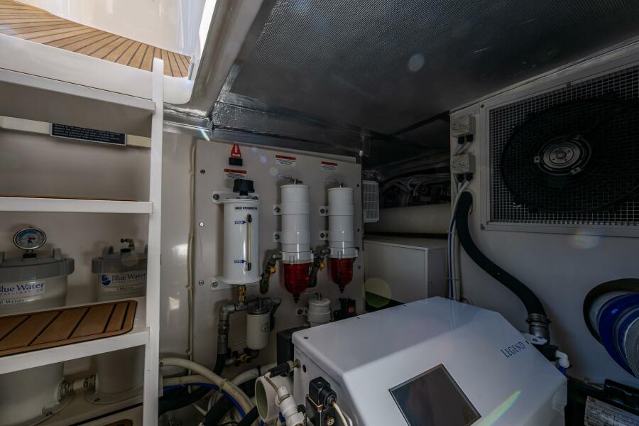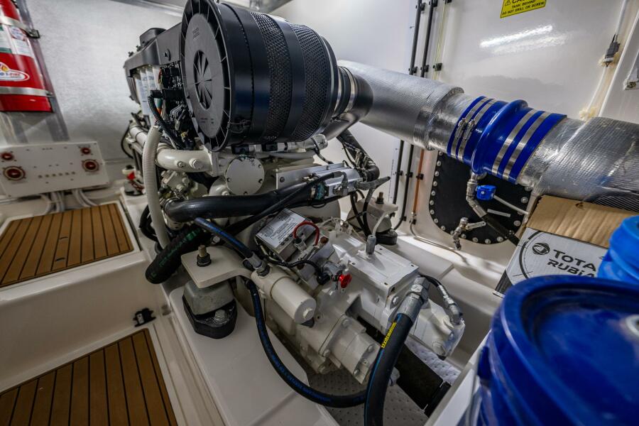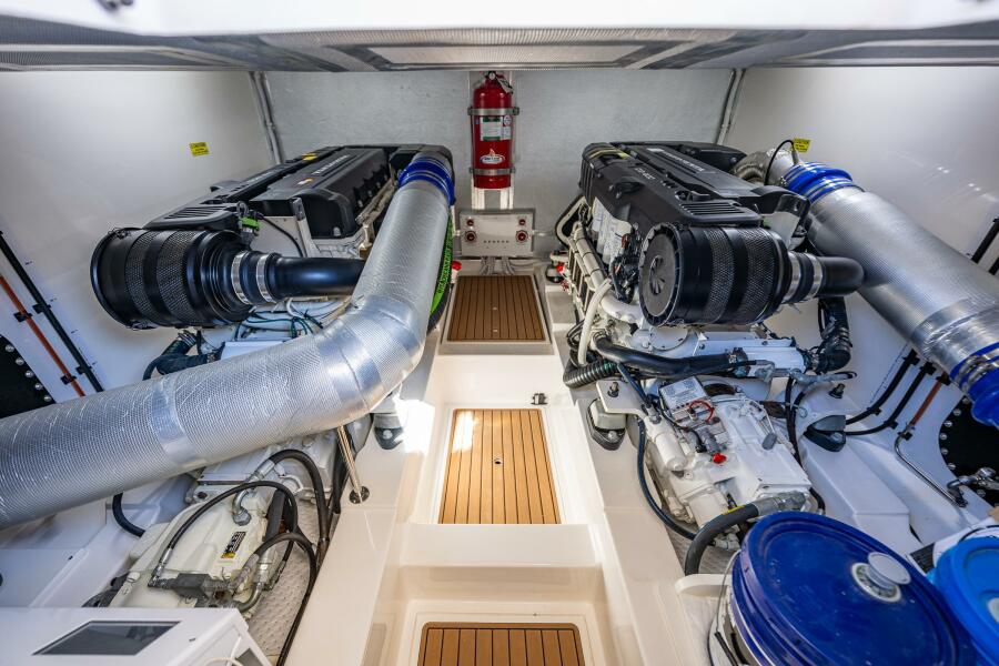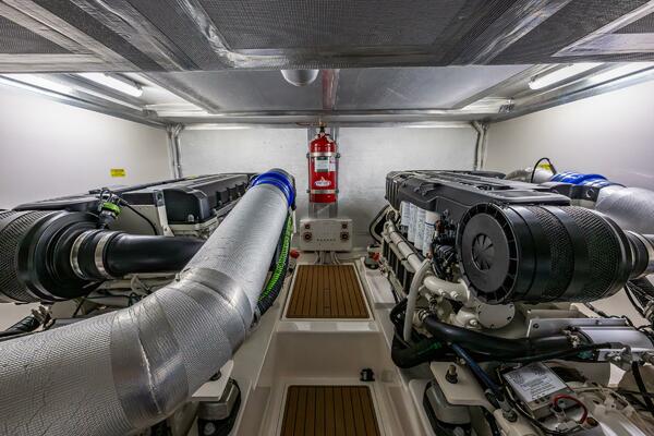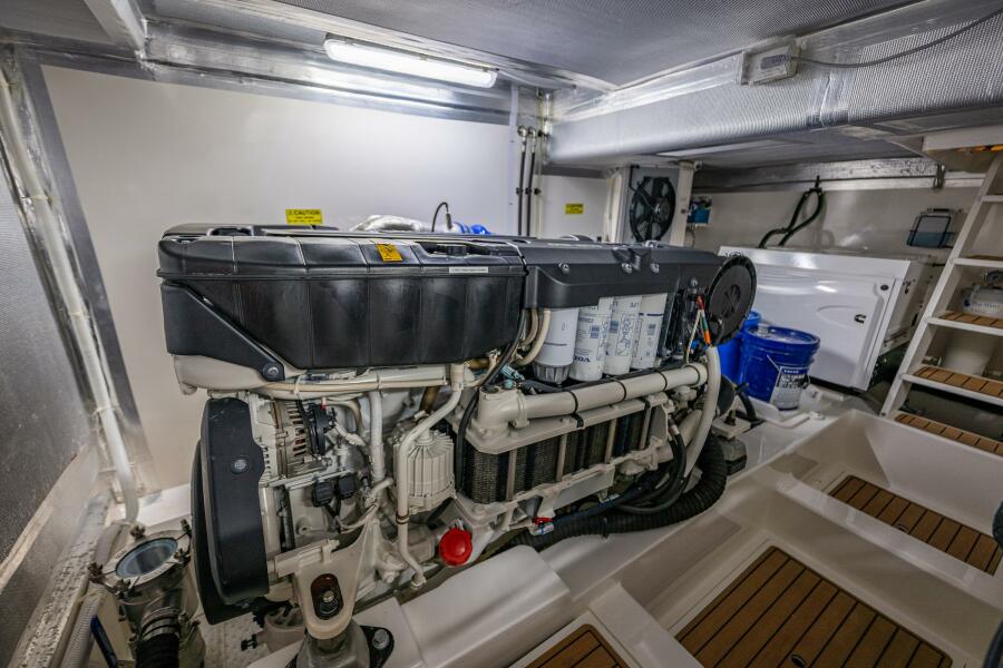 Propulsion power for "True North" is a pair of Volvo D13 800HP inboard diesels with approximatley 1150 hours. The engine room is very clean and offers excellent access to all of the equipment housed in the space.
