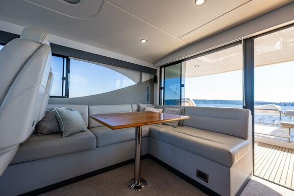 - Starboard side large U-shaped settee with a modern S/S-teak table