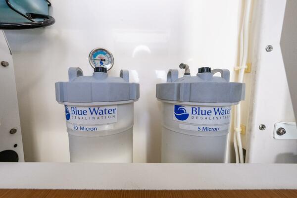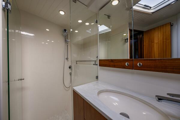 Electrical power is provided via the 250/125VAC/50A shore power, Magnasine 4KW inverter/charger and the Onan 21.5kw diesel generator and yachts DC battery system. All power is managed through the AC/Dc power distribution panels located in the main salon.