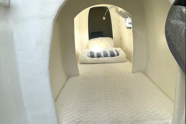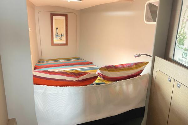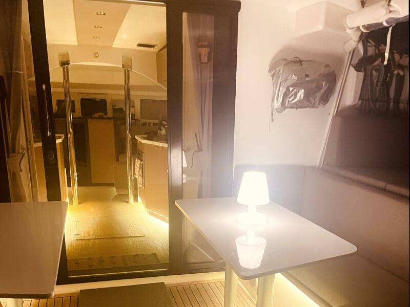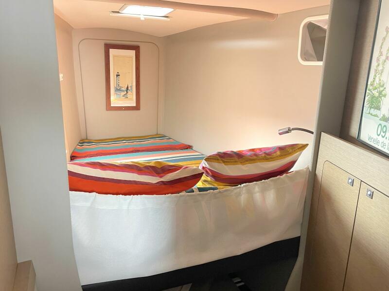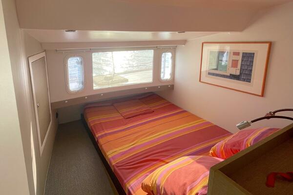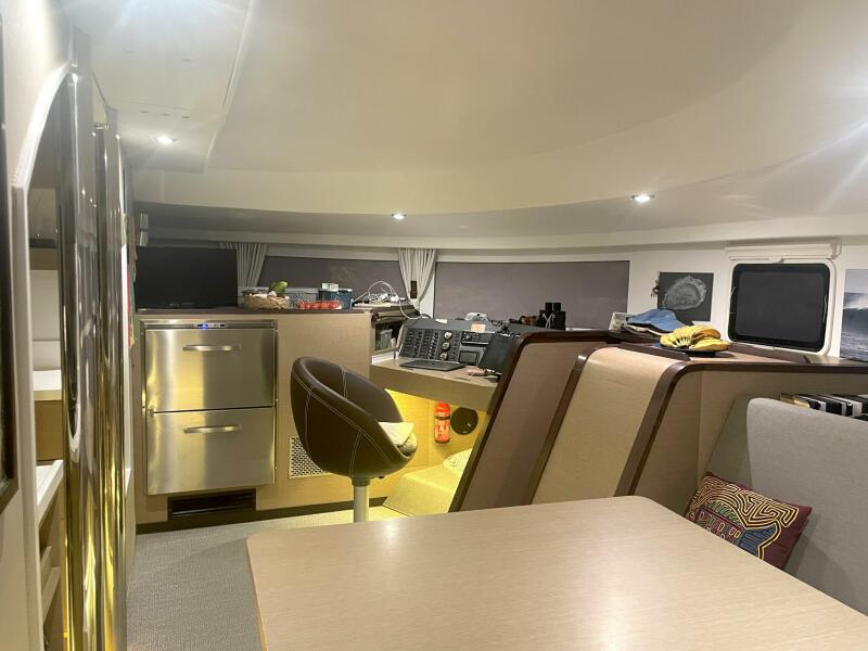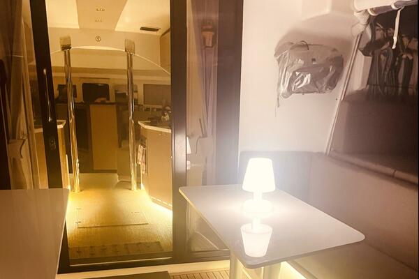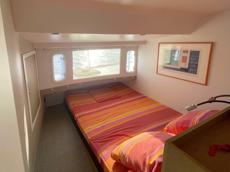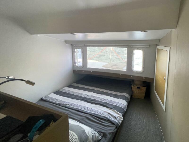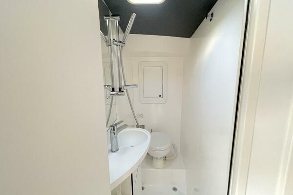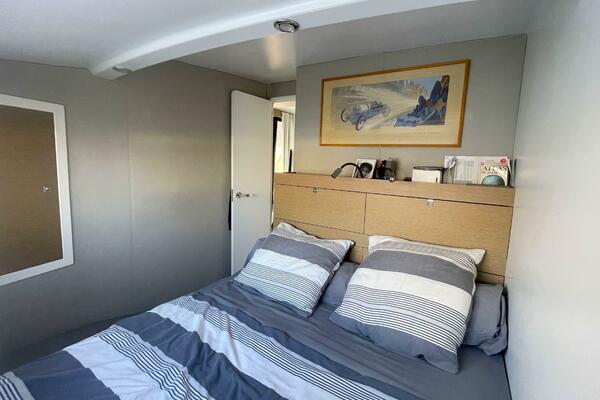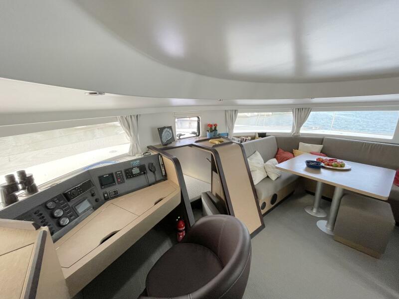 Below deck, her “Cockloon” layout connects the cockpit and saloon into a single, open-plan living area with excellent visibility. The central galley is secure and functional at sea, and generous storage throughout supports long-range self-sufficiency. The main-deck owner’s cabin and float cabins offer private, well-ventilated accommodation, carefully balanced for optimal sailing trim.