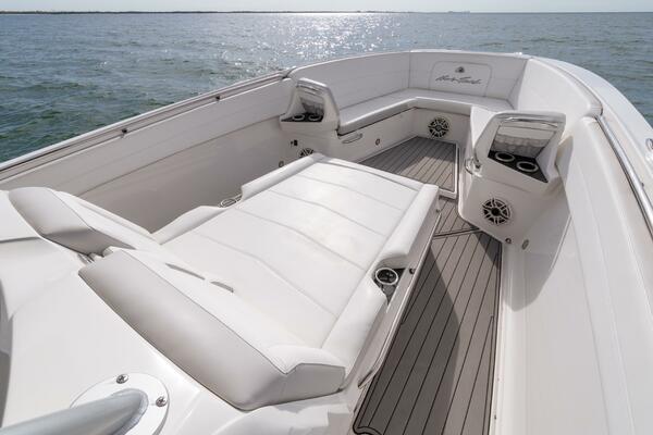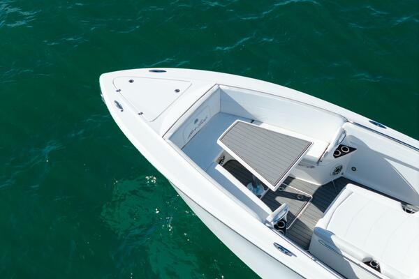 The Nor-Tech 390 Sport is known for its sleek styling, top-tier handling, and smooth ride in all conditions. The stepped hull and deep-V design offer exceptional efficiency, while the triple 450Rs push her effortlessly beyond 80 mph. Inside, the spacious cockpit and air-conditioned cabin make her equally suited for offshore runs or sandbar days with family and friends.