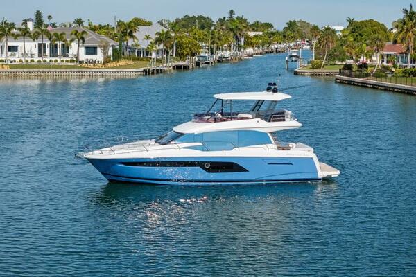 2020 Prestige 520 Flybridge "La Dolce Vita" For Sale! The 520 Fly is a top of the line model which incorporates many of the great features of the previous model, the 500 and some added innovations as well. The flybridge is XL and very comfy for relaxing. Also, this has a hardtop. Life on board is easy, very relaxing with a full service aft with excellent access to the galley.
