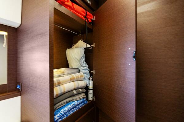 North American Pack – Forward Sun Pad mattress with Adjustable Sun Loungers, Teak Cockpit Table with Folding Leaves, Main-deck Protective Covers, Foredeck Sunpad, Cockpit Seating and Cockpit Table Covers, Stainless Steel Bow Protection, Electric Trim Tabs, Opening Window to Port, Freshwater/Saltwater Wash-Down System in Cockpit and Anchor Locker with Dedicated Pump,Dockwater Inlet, Glendinning Cable Management System