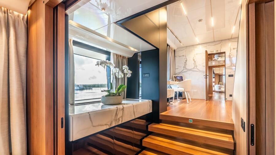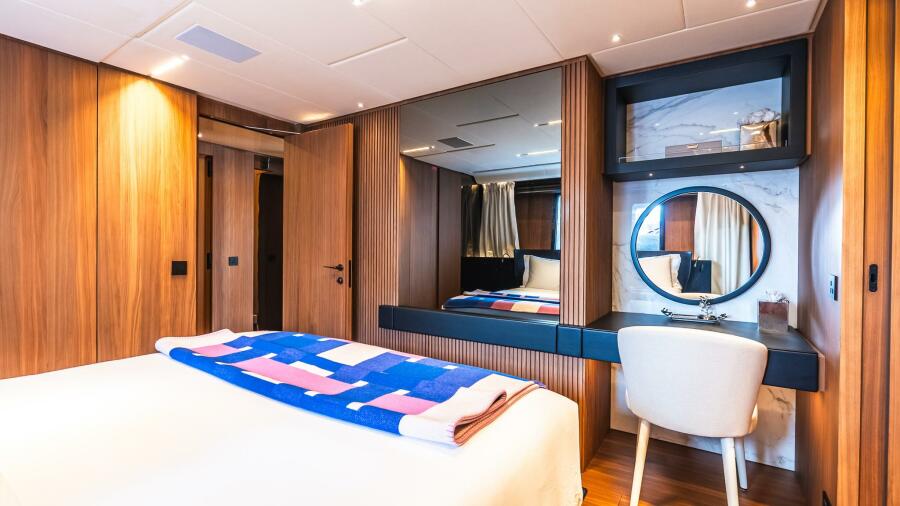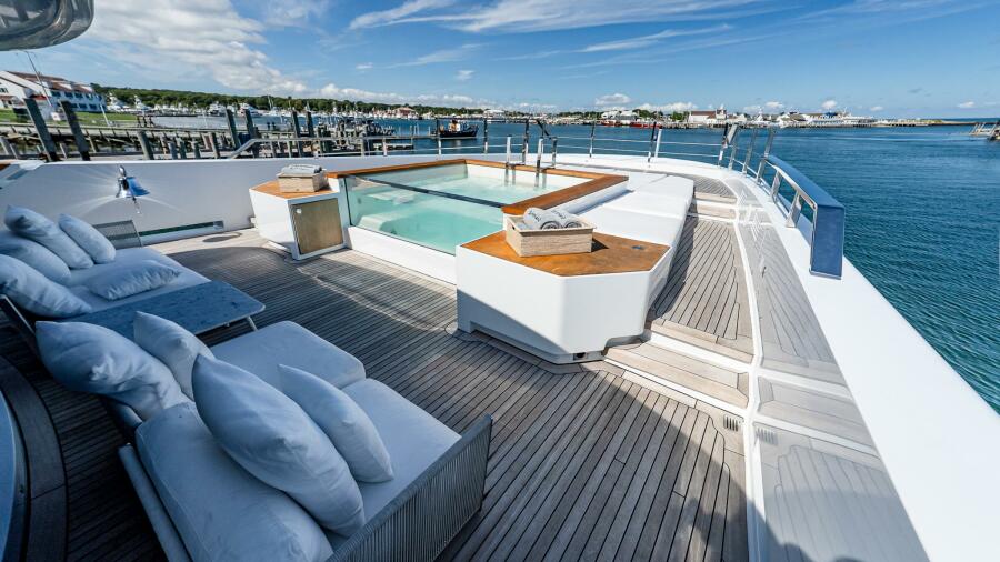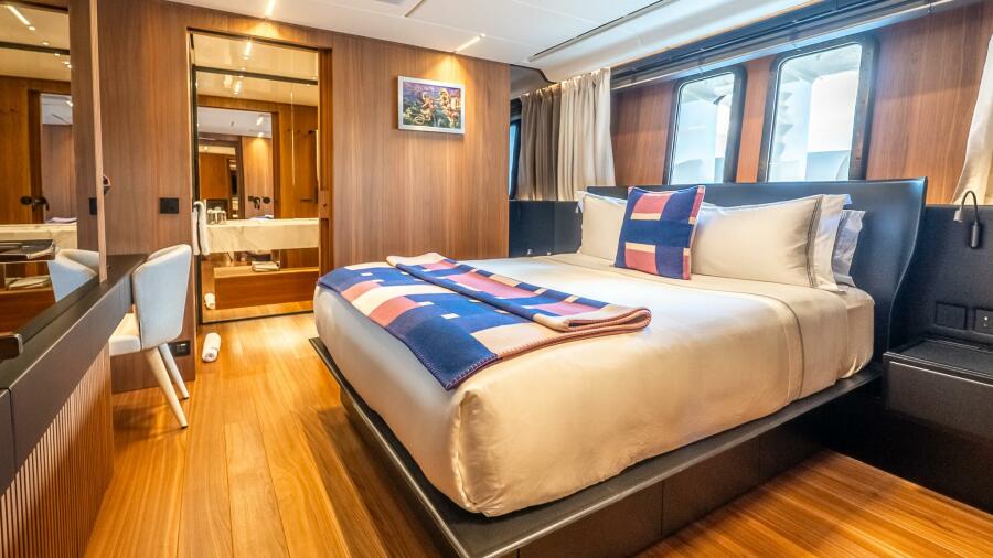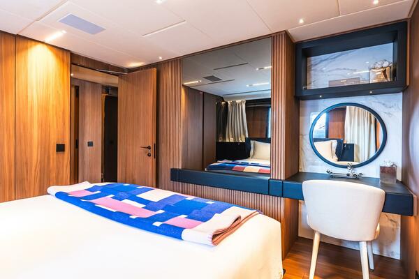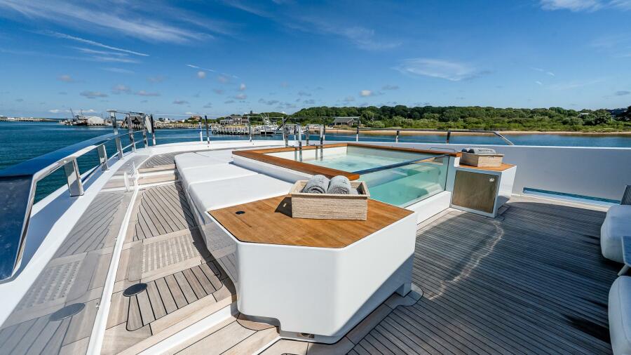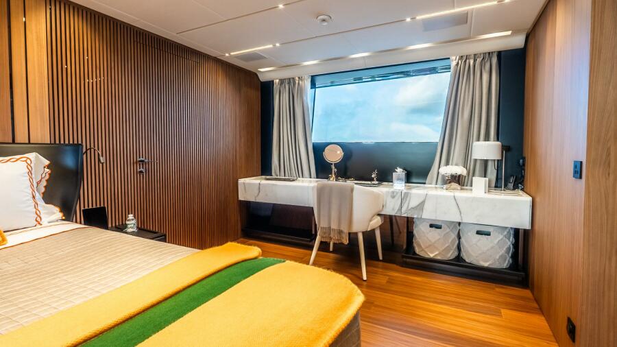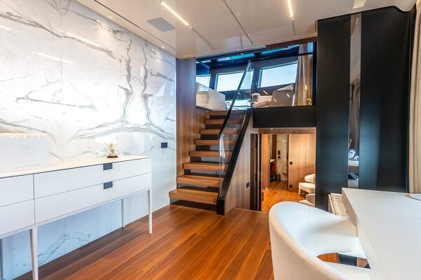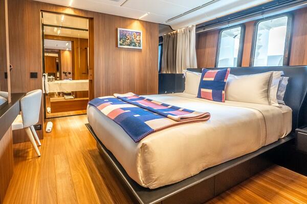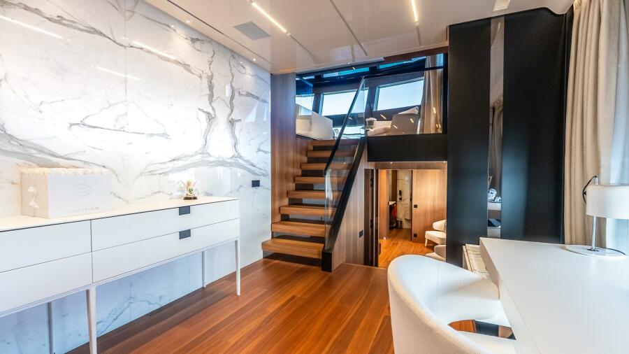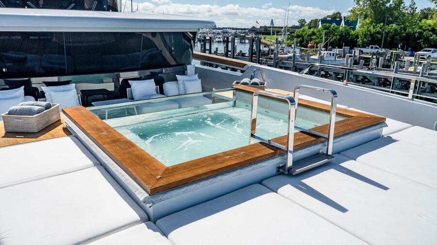 "Neverland" offers on-deck jacuzzi & sun lounge for the ultimate relaxation with panoramic views. "Neverland" offers a class-leading two-level master suite with a luxurious ensuite head and walk-in closet that is sure to impress.