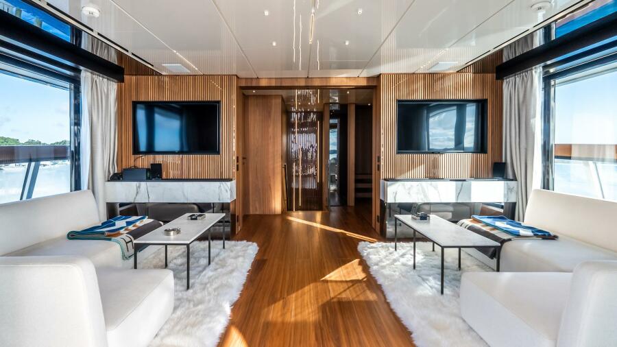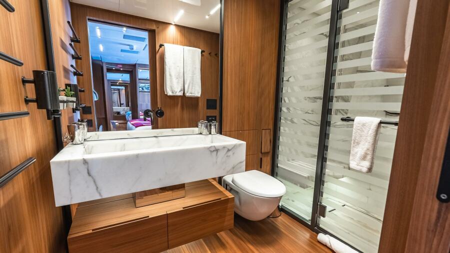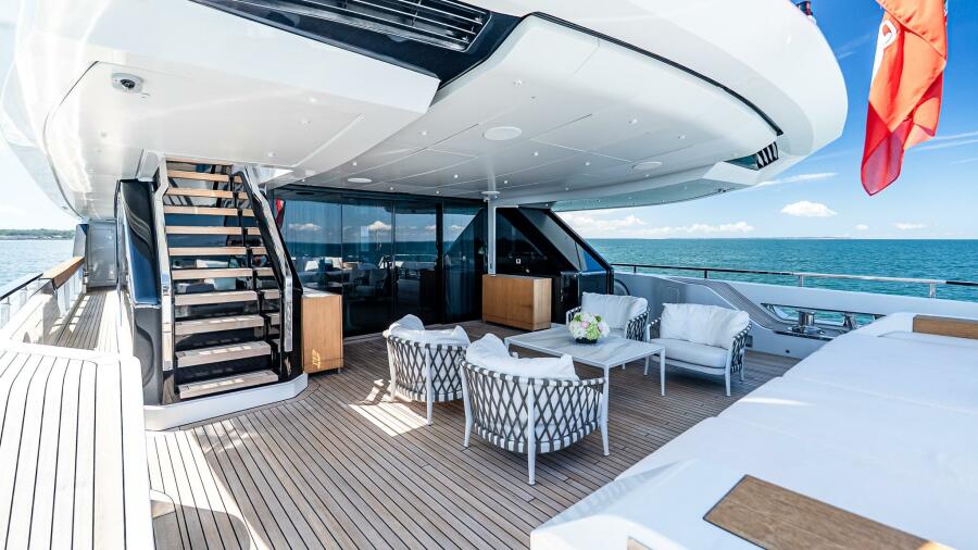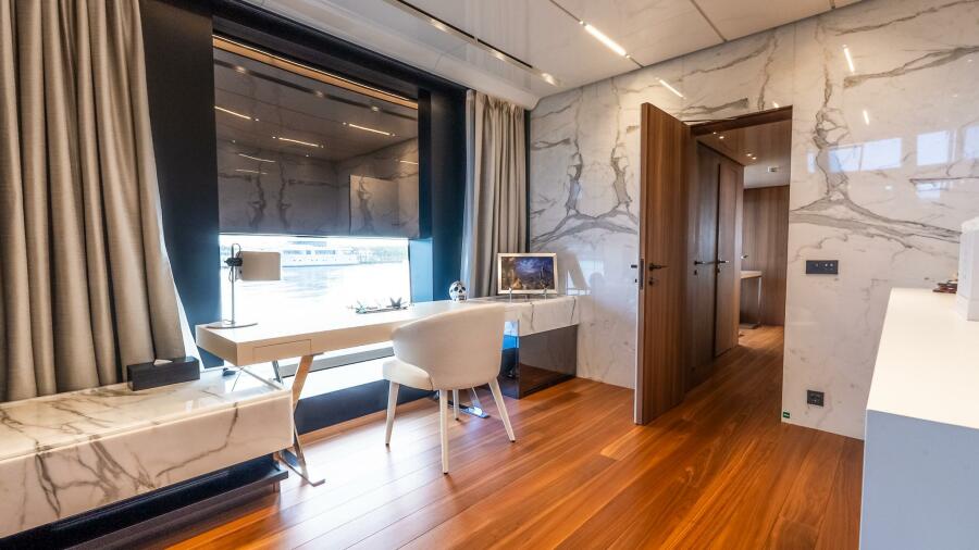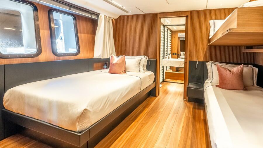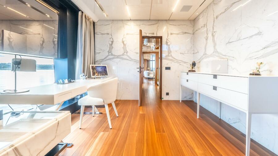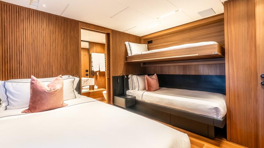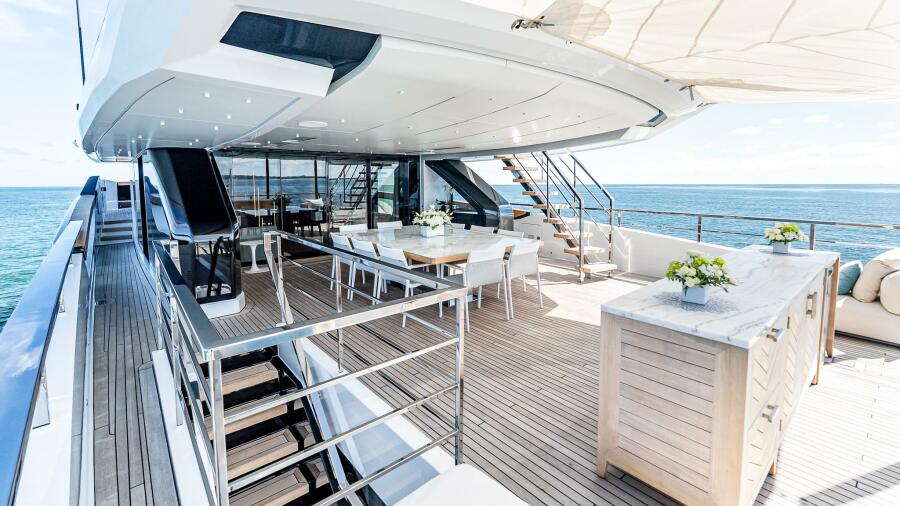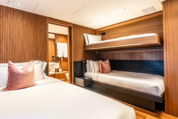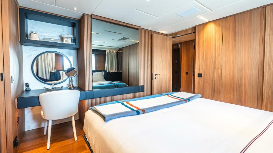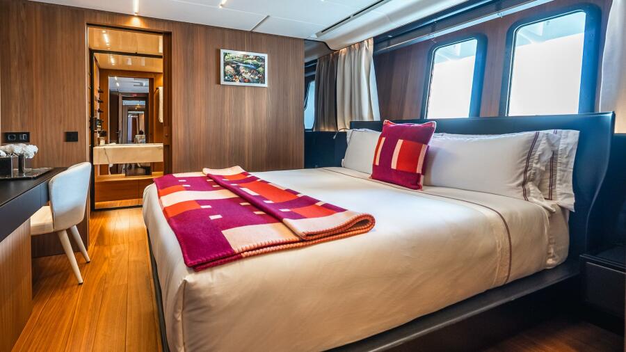 "Neverland" offers on-deck jacuzzi & sun lounge for the ultimate relaxation with panoramic views. "Neverland" offers a class-leading two-level master suite with a luxurious ensuite head and walk-in closet that is sure to impress.