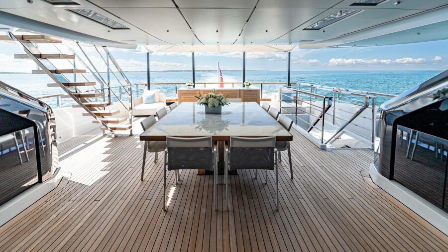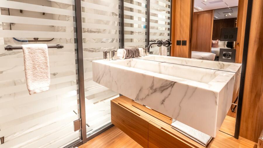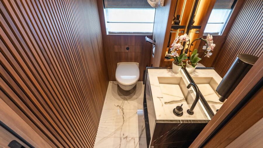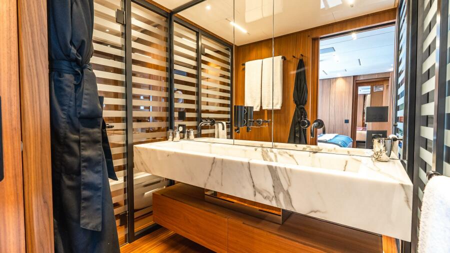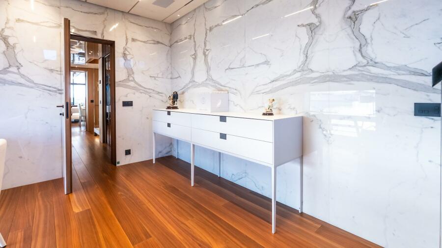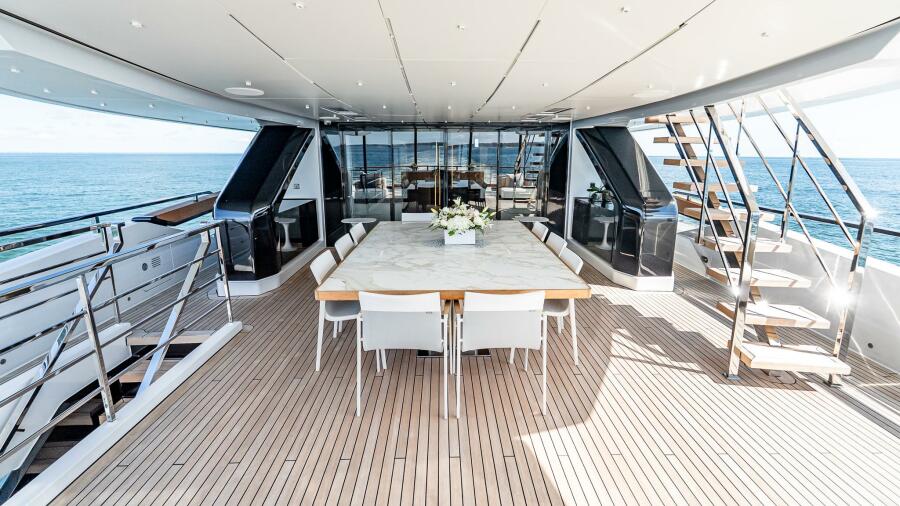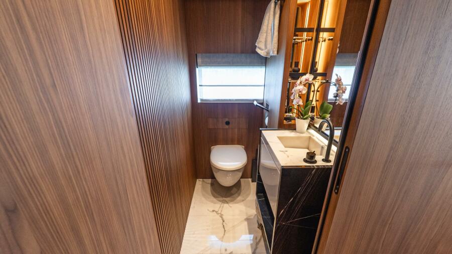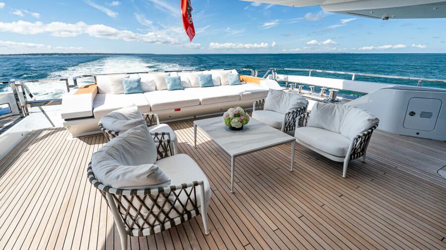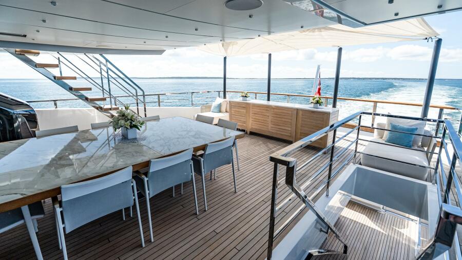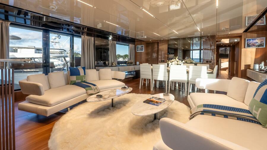 "Neverland" offers on-deck jacuzzi & sun lounge for the ultimate relaxation with panoramic views. "Neverland" offers a class-leading two-level master suite with a luxurious ensuite head and walk-in closet that is sure to impress.