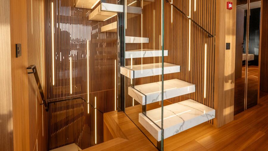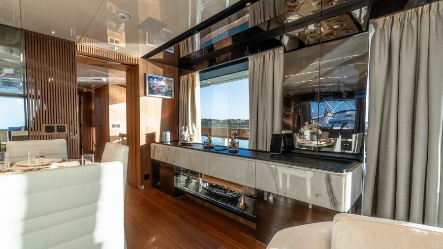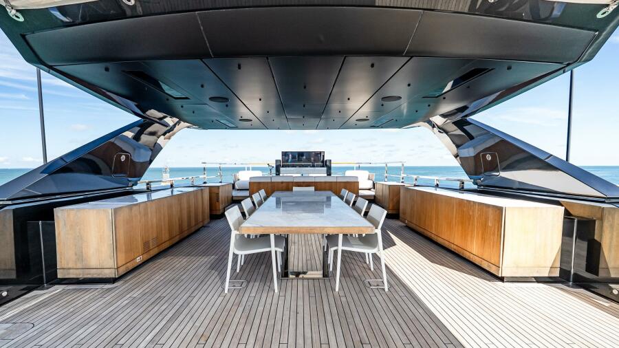 "Neverland's" blend of cutting-edge interior design, uncompromising performance, and seamless outdoor living space that offers tri-deck and beach club with fold-down balconies creates the ultimate entertaining space.