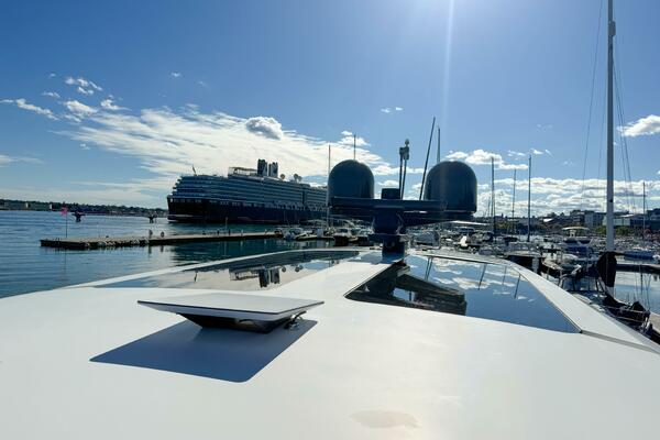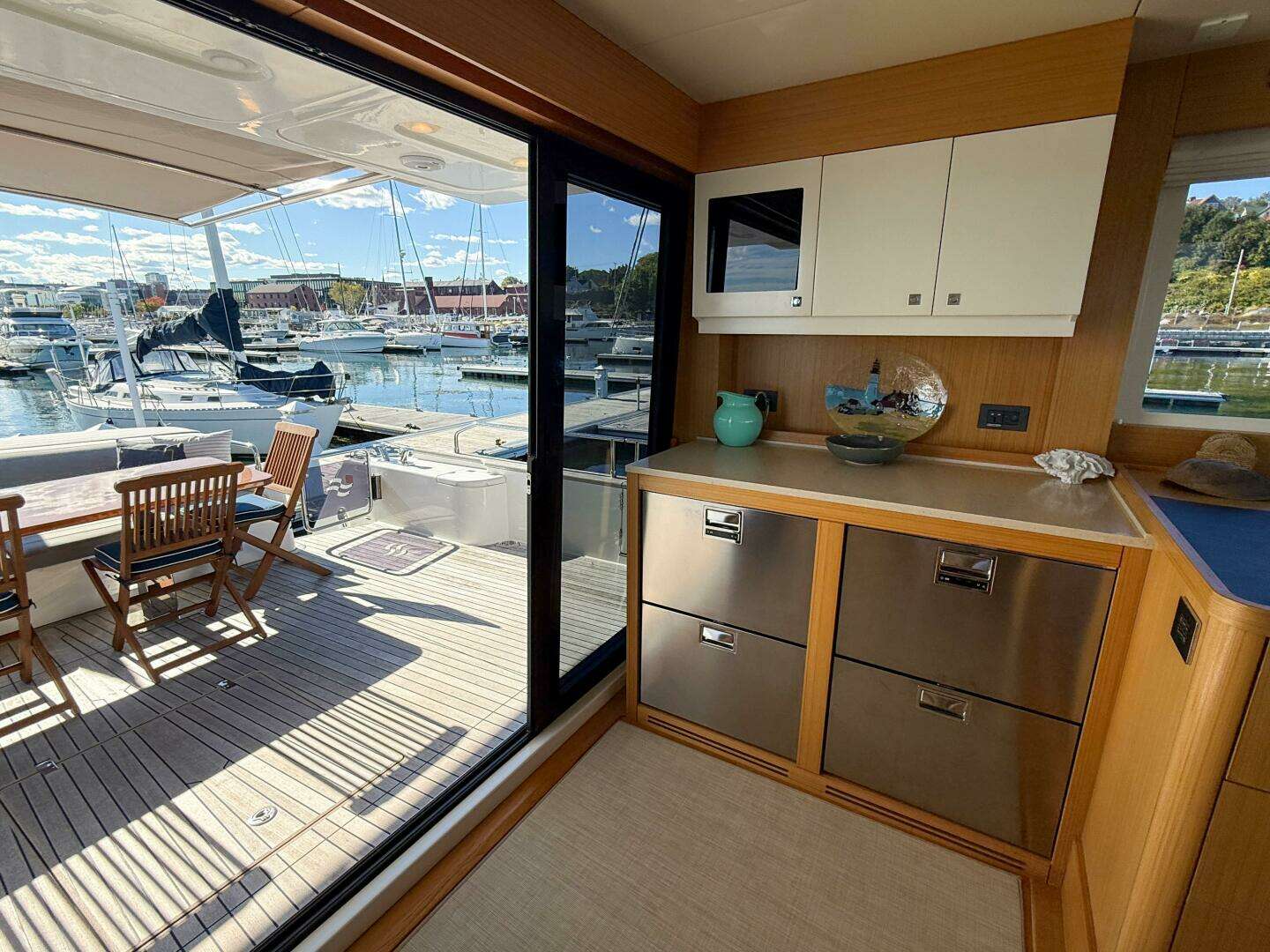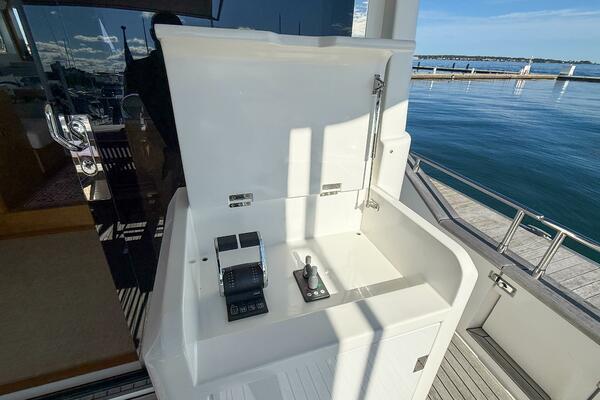 - GRP unit to starboard with steering station (throttles and thrusters) and icemaker below
