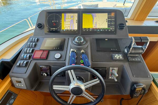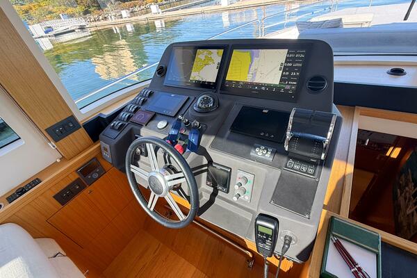 Tiger is very well-equipped with twin CAT 650hp engines, Seakeeper, and bow and stern thrusters. Custom additions include: Starlink satellite internet, Dockmate handheld remote control Joystick docking, co-pilot helm seat, aft steering station for easy docking in any situation, laundry room lazarette, true King size master bed, upgraded fridge/freezers in the galley, and extra railings and handrails in all the right places. Tiger has always been stored in indoor heated storage in the winters and cruised throughout Maine in the summers with only a few months down South in 2023.