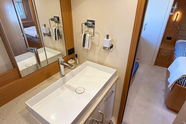 - VIP head has vessel sink, great storage and access to mechanical space over toilet