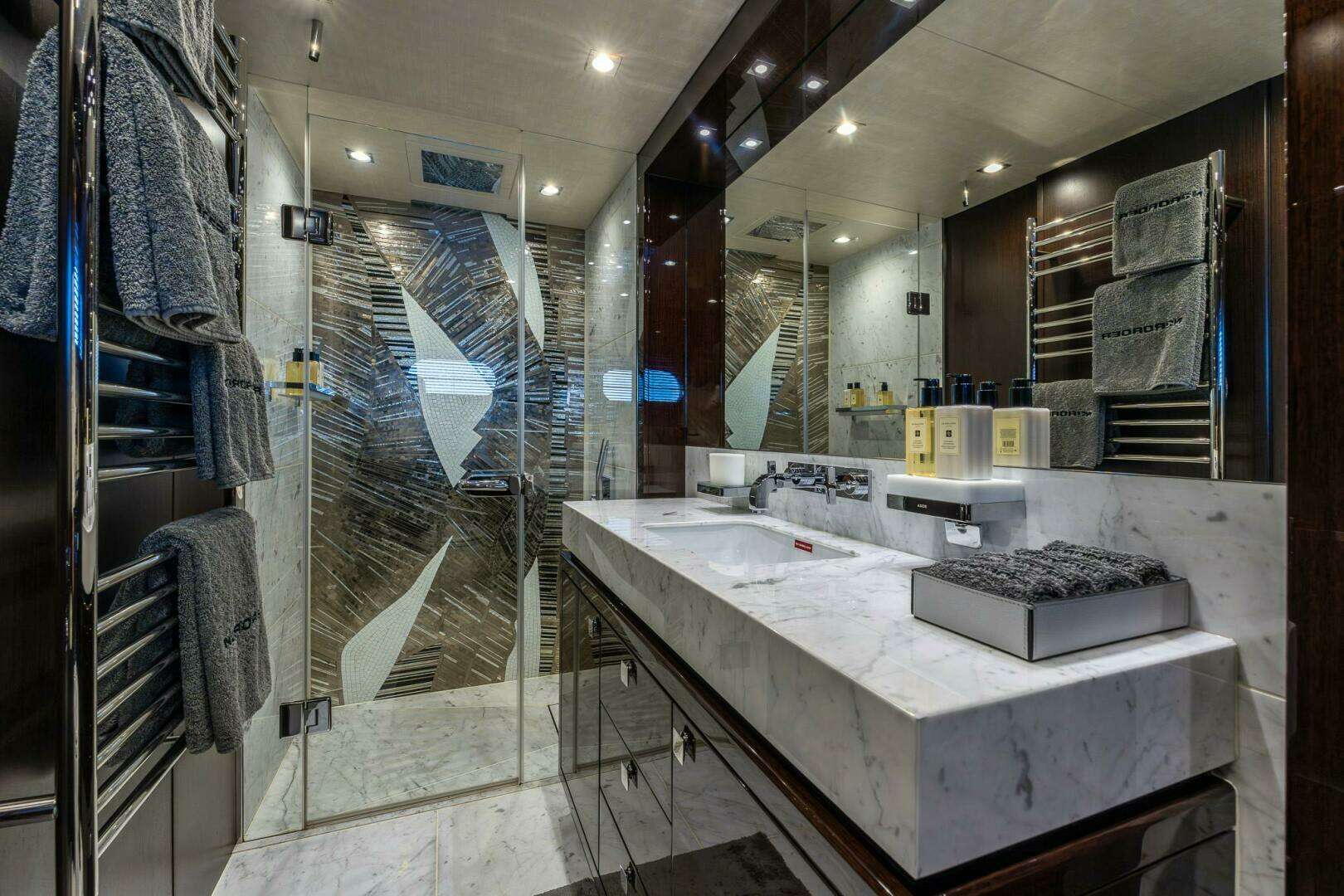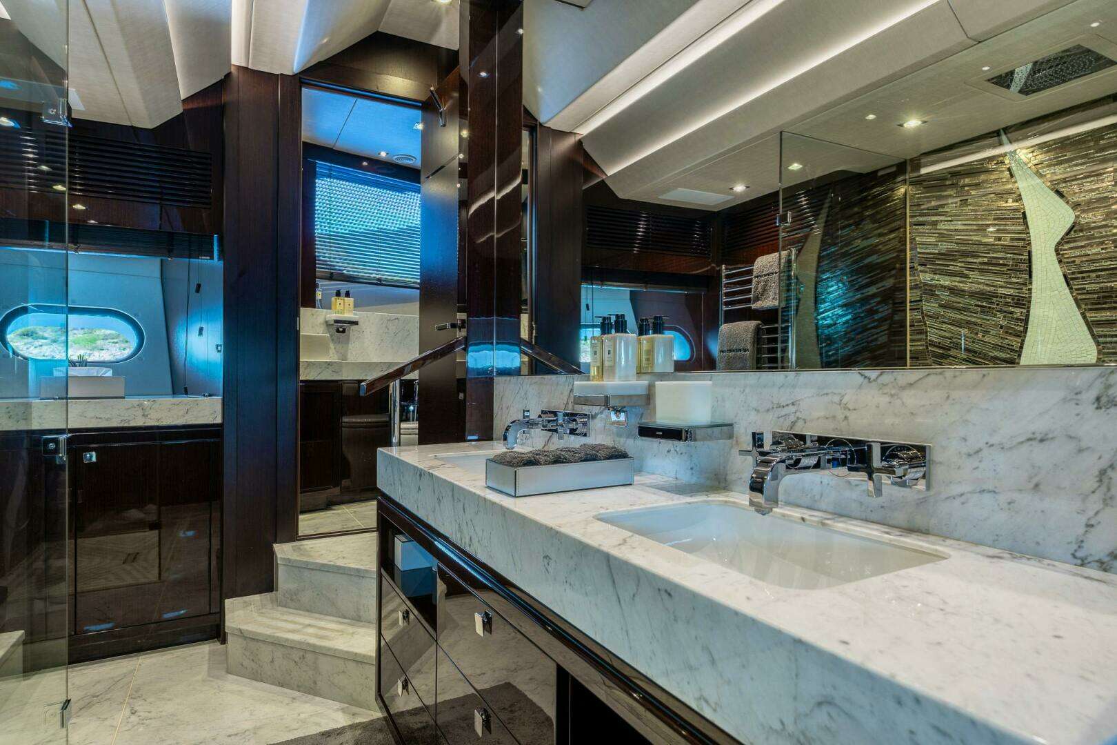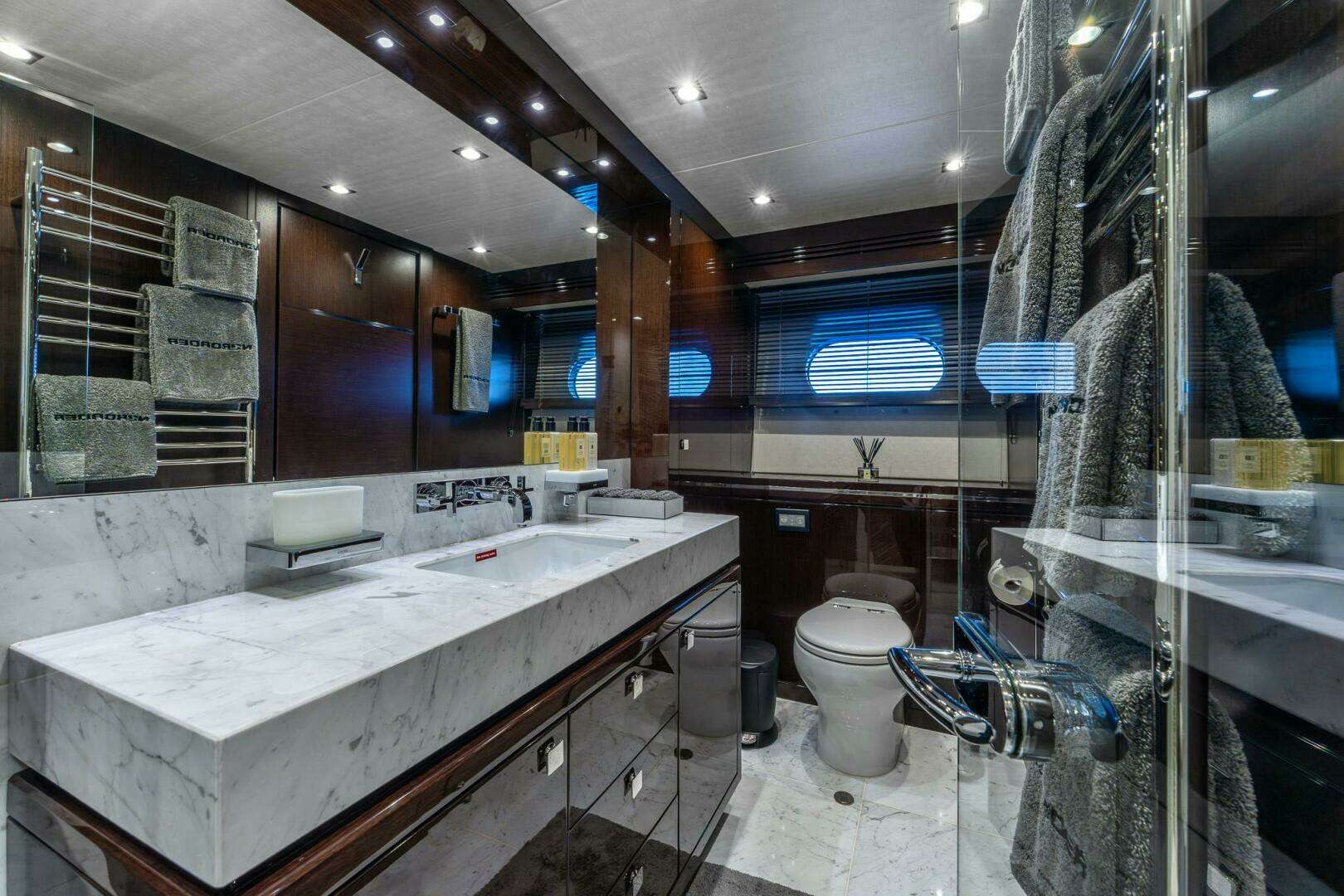 ► Electric Roman Blinds with App functionality throughout Yacht