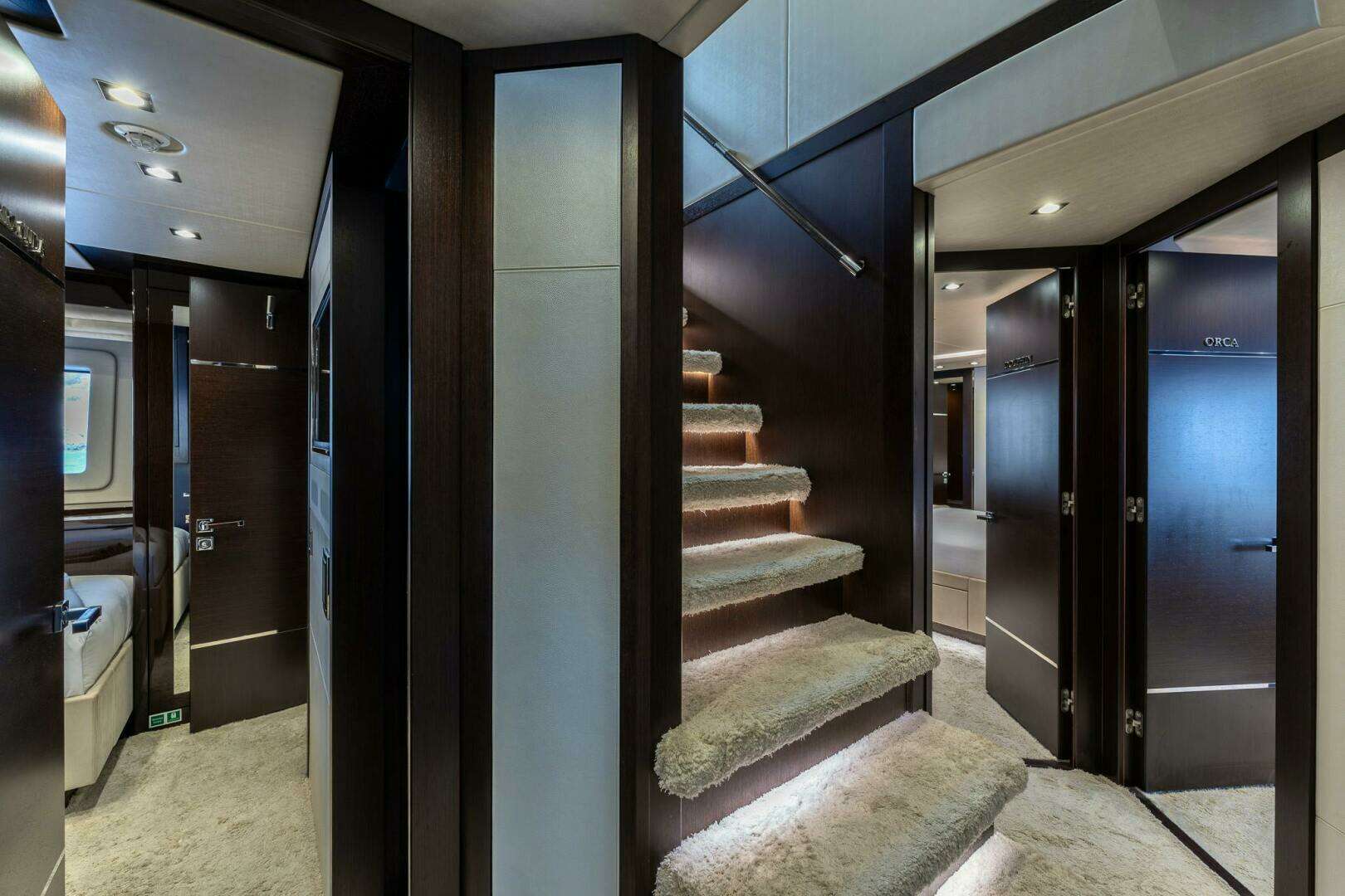 ► Thick carpet on companionway and to lower guest areas