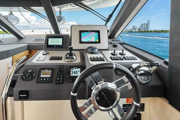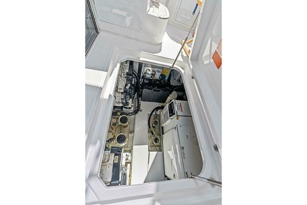 Her contemporary interior is bright and inviting, with panoramic windows that flood the salon with natural light. Her well equipped galley, spacious salon, and comfortable accommodations for extended cruising create an atmosphere of casual luxury. Two staterooms, including a full-beam master, offer excellent comfort, while her intelligent layout ensures ample storage and ease of movement throughout.