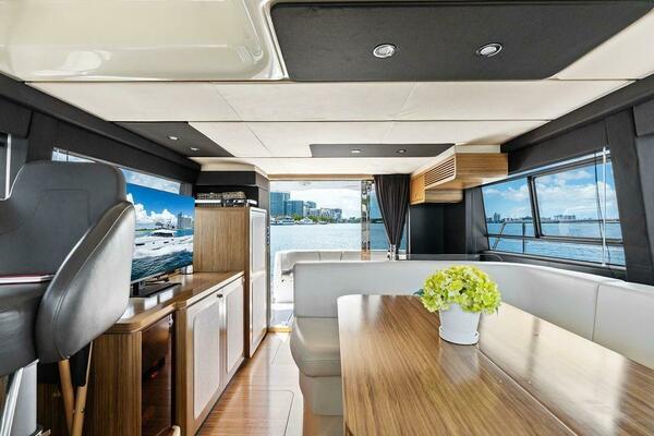 - Hi-lo table on fly convertible in sunbed area (in lieu of stbd fixed table)
