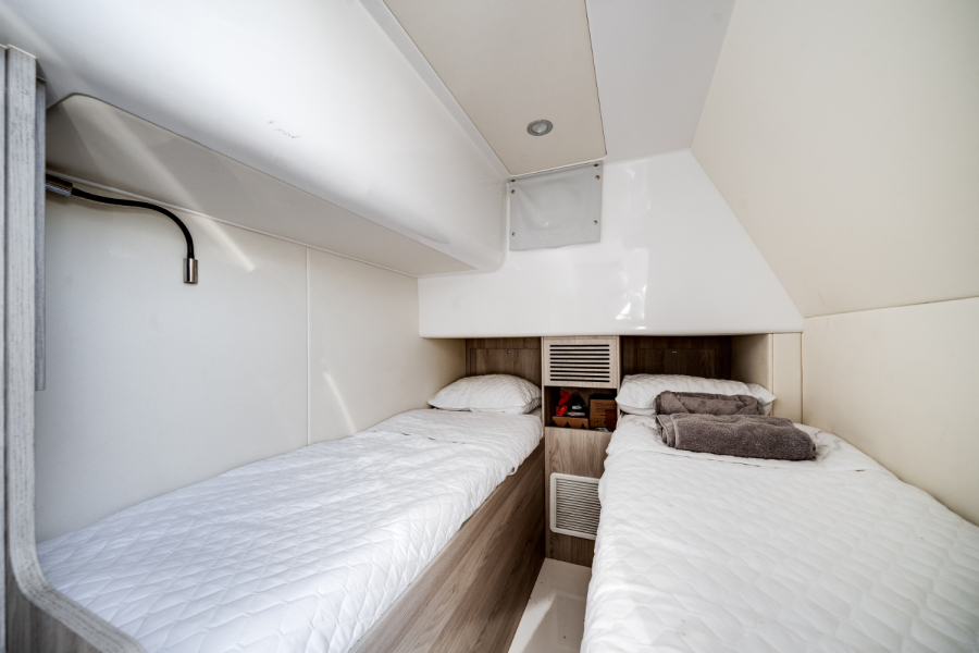 The Azimut is renowned for its impeccable craftsmanship and attention to detail. The sleek lines and spacious flybridge create an ambiance of elegance, making every outing an occasion to remember. Luxurious materials and state-of-the-art features ensure your comfort while indulging in the spectacular views.