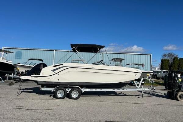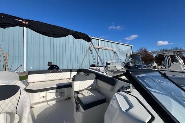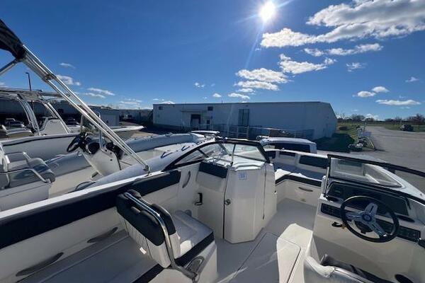 This family-friendly outboard model combines all the most popular aspects of the DX Series. The sleek exterior is complete with hull sculpting and stylish shear lines while the interior is loaded with all the comforts of home. The plush upholstery features quilting with black welt plus transitional cockpit and transom seating offer total lounging comfort while facing forward or aft. When underway the wider V-hull offers stability and a high freeboard keeps everyone safe and dry.