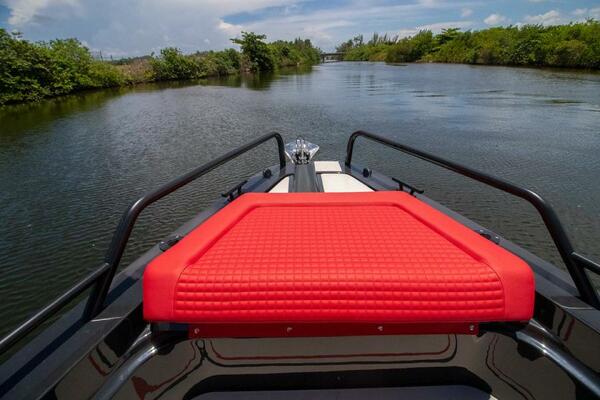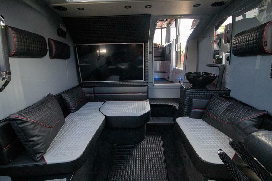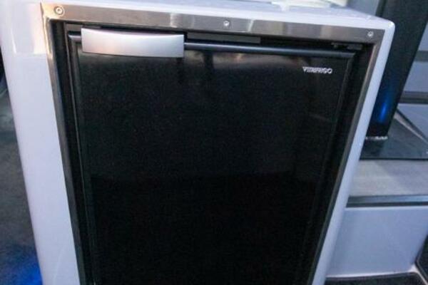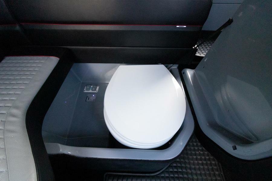 The cabin features cool grey and black BRABUS Fine Leather® and Dinamica with contrasting red accents and stitching, a pocket springed ‘queen size’ sleeping accommodation has a sense of space and luxury more associated with a supremely comfortable lounge, toilet enclosure with separation wall with a lockable door. Toilet bowl is moved to SB side and mounted in transverse direction compared to the standard layout.