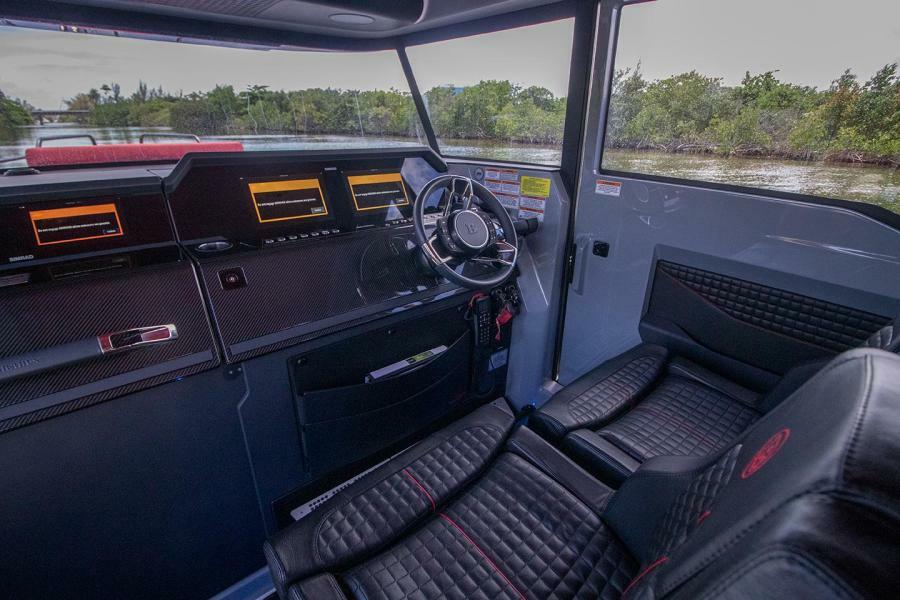 All BRABUS® Shadow 900 models features a full Glass Bridge / InformationDisplay with two 12" screens with a BRABUS® User-Interface offering a selection of driver-orientated sport modes. The Intelligent Steering Module with integrated trim tab, bow thruster and audio controls will enable you to control the boat even smoother than ever before.