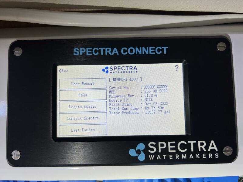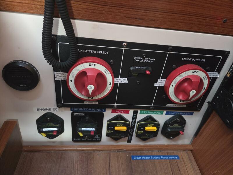 - Water maker: Top-of-the-line Spectra 400C watermaker (approx. 17g/hr) with a self-flushing cycle (every 30 days) (around 20k value).