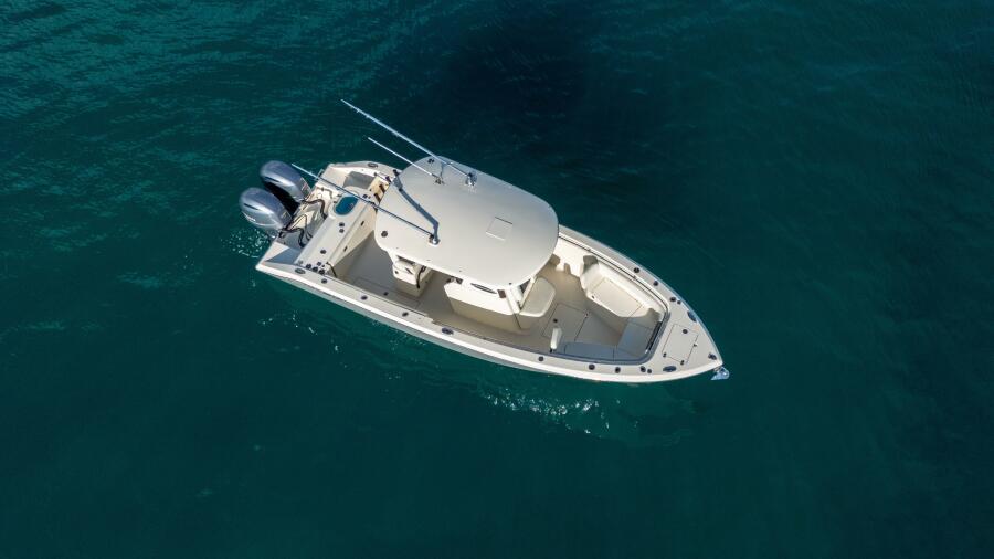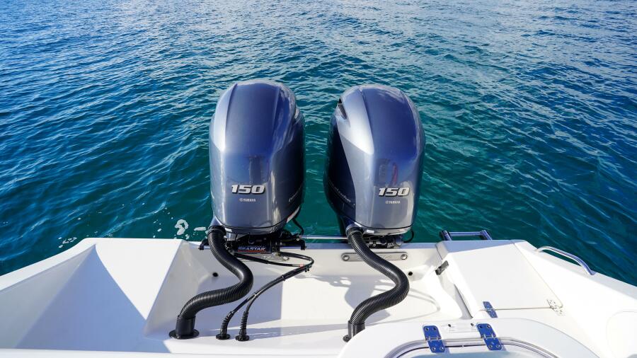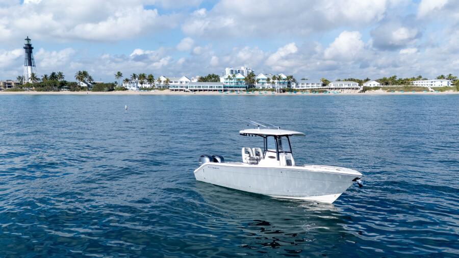 This 2021 Cobia 262 Center Console is a standout in the 26–27 ft offshore class. Cobia’s advanced VARIS vacuum-infused composite hull keeps the boat strong, lightweight, and exceptionally smooth even in a 2–4 ft chop. With a 9 ft 3 in beam, deep cockpit, and wide bow, the 262 CC offers one of the most comfortable and stable fishing platforms in its class. Powered by twin Yamaha outboards, this boat delivers quick hole-shot acceleration, excellent cruising economy, and rock-solid reliability. Ideal for offshore fishing, diving, island hopping, or family days on the water. The helm features a modern black acrylic dash, along with Yamaha digital controls, trim tabs, and integrated switching. A fiberglass hardtop with LED lights and rod holders adds shade and offshore capability. Fishing features include multiple rod holders, under-gunnel storage, dual oversized insulated fish boxes, and a large livewell. Forward seating with removable backrests and a console lounger creates the perfect family-friendly layout while still offering plenty of fishing space. This 262 CC also includes a spacious head compartment inside the console—ideal for long days on the water. If you're searching for a premium offshore boat from a top-tier brand, the Cobia 262 CC is one of the best values you’ll find.