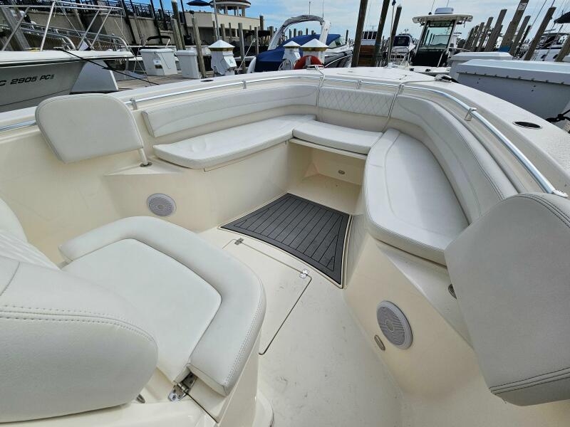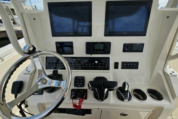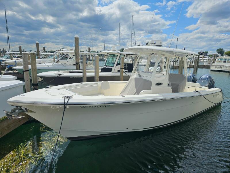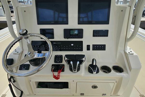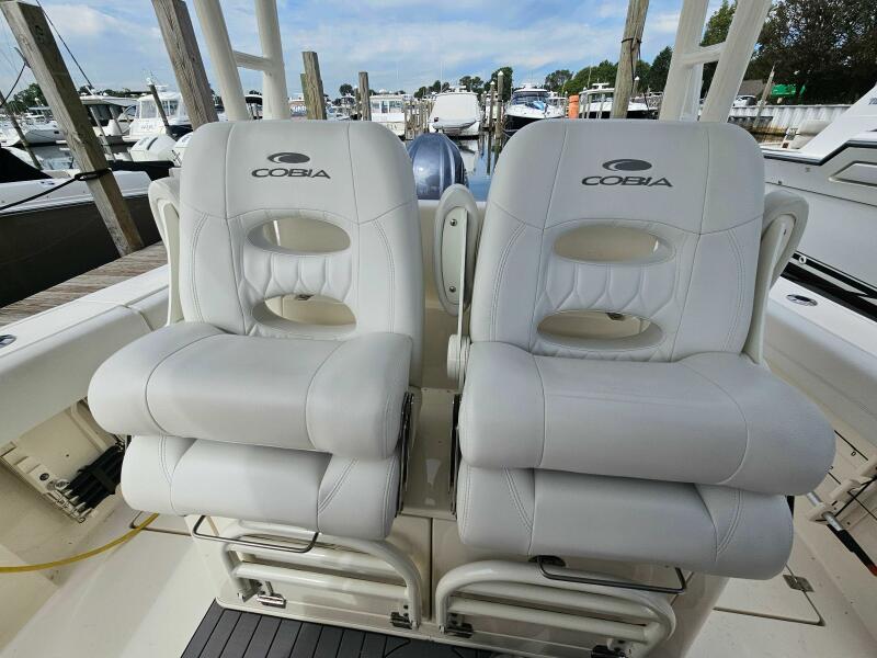 2021 Cobia 301 Center Console – Freshwater Beauty | Highly Optioned | Meticulously Maintained Turn heads and conquer the water with this immaculate 2021 Cobia 301 Center Console, a rare freshwater-only find that blends serious offshore performance with refined creature comforts. Owned by a seasoned boater with an uncompromising eye for detail, this vessel has been meticulously maintained, professionally serviced, and stored with care since day one. Powered by twin Yamaha F300s with digital controls, this Cobia 301 delivers effortless handling, performance, and confidence-inspiring reliability. With low hours and freshwater use only, her engines and systems are in exceptional condition - ready for seasons of adventure. This boat is loaded with premium factory options and custom upgrades, including: Garmin twin touchscreen displays with GPS and Radar Yamaha Helm Master with joystick control for precision docking Upgraded Fusion Audio premium sound system Fiberglass hardtop with integrated lighting and electronics box Deluxe tackle station Electric head with holding tank Windlass with stainless steel anchor Custom canvas covers And much more… With a deep-V hull designed for offshore confidence and a layout that’s equally at home cruising inland lakes or chasing fish, the 301 is one of the most versatile center consoles in her class. Forward seating with removable backrests, convertible aft bench, and ample storage make her perfect for both family days and serious angling. Whether you're upgrading or looking for that "like new" experience without the new boat price tag, this 2021 Cobia 301 checks every box. Custom bottom paint. No salt exposure. No excuses. Shown by appointment only. Don’t miss your opportunity to own one of the cleanest, best-equipped Cobia 301s on the market today.