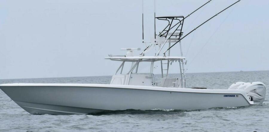 Step aboard the 44 Contender, where performance meets luxury. This exceptional vessel is a prime example of Contender's renowned craftsmanship and innovation. Designed for the serious angler and offshore enthusiast, it boasts a powerful Triple engine setup, providing speed and reliability in both calm and challenging conditions. The 44 Contender features an expansive deck layout, perfect for fishing and entertaining. With ample storage, a spacious cockpit, and high-quality fishing amenities including multiple live wells and rod holders, this boat is built for serious sport.