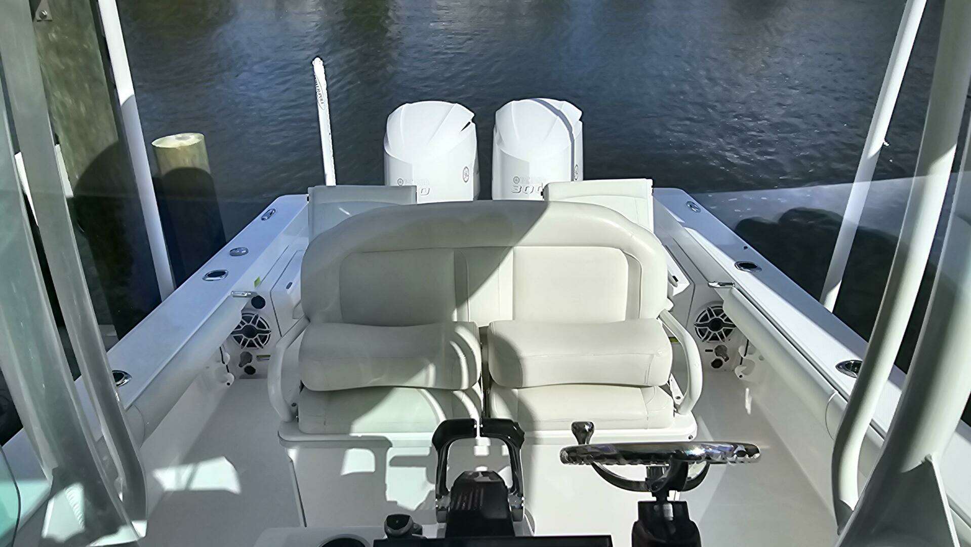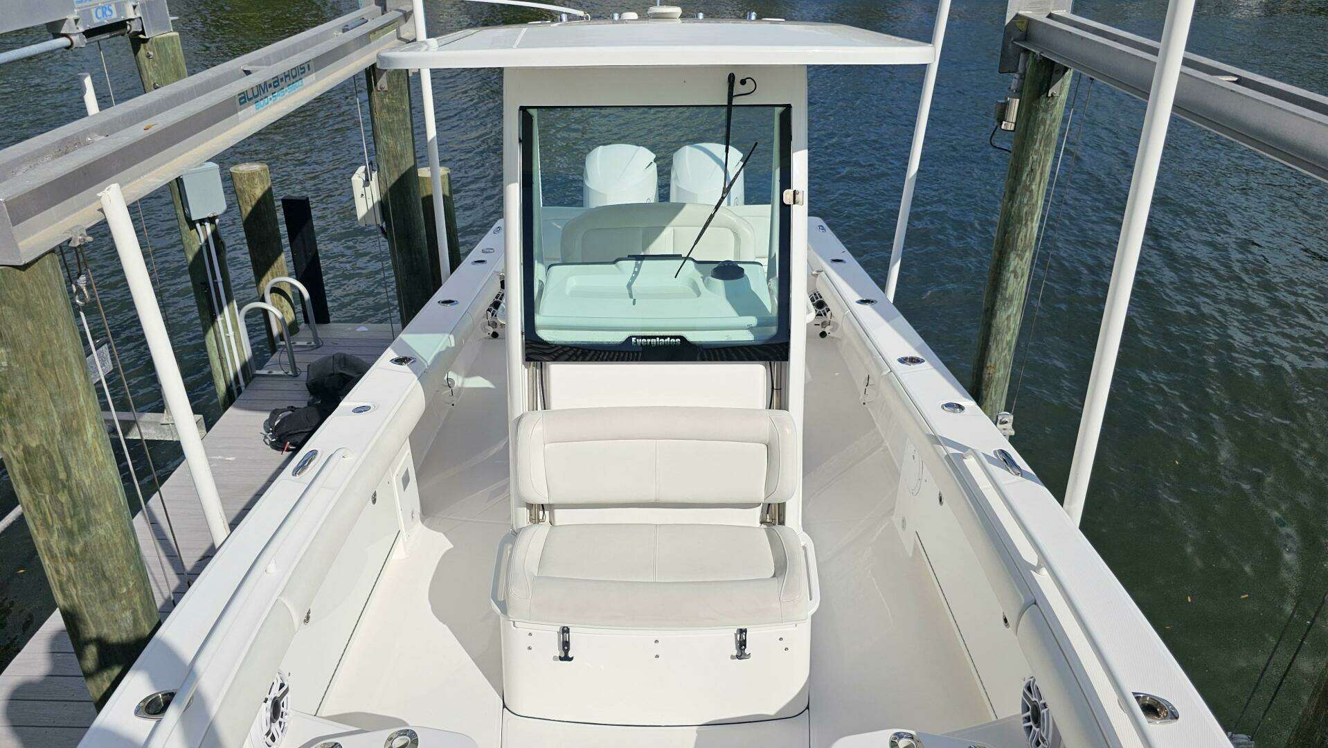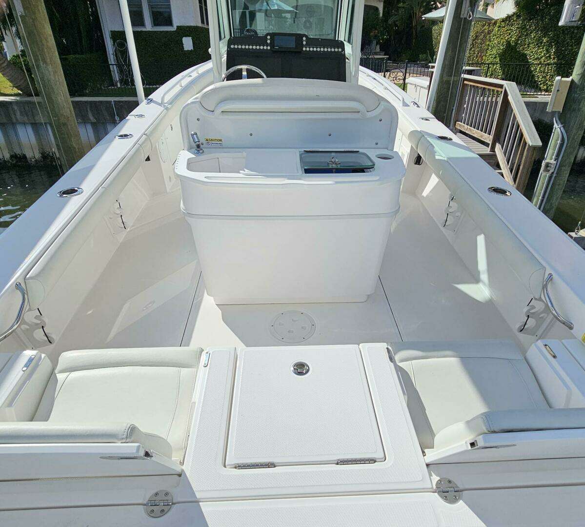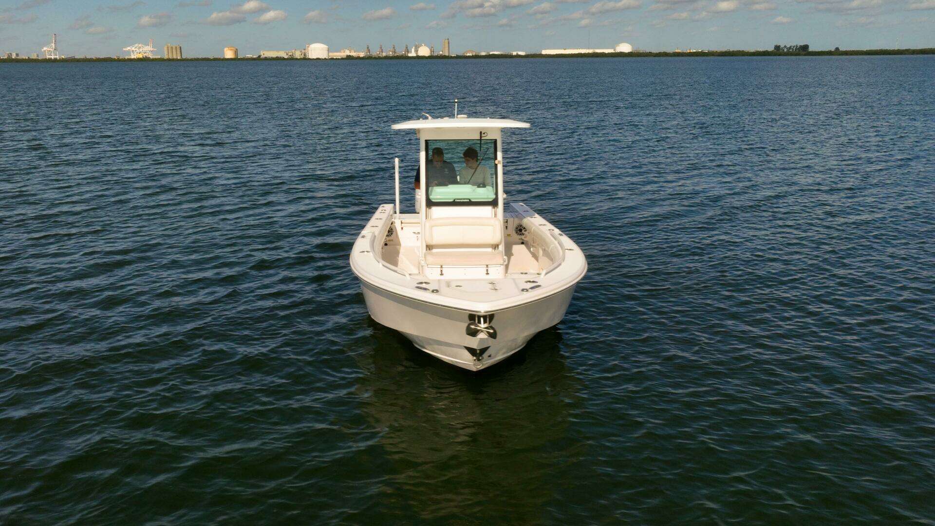 Don’t let the shallows stop you, and don’t fear the offshore, this hybrid center console tackles it all. With lower gunwales and a draft of only 18”, this hybrid center console navigates skinny water with ease. Powered with twin Yamaha 300's with joystick.