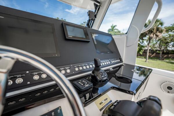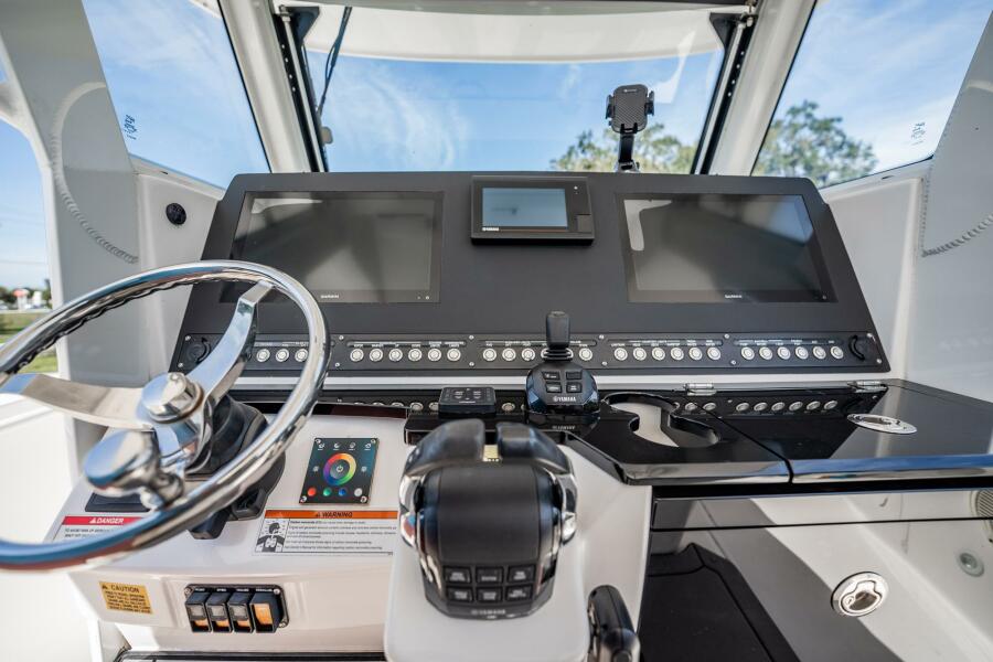 - Triple Pompanette helm seats with armrests and adjustable bolsters