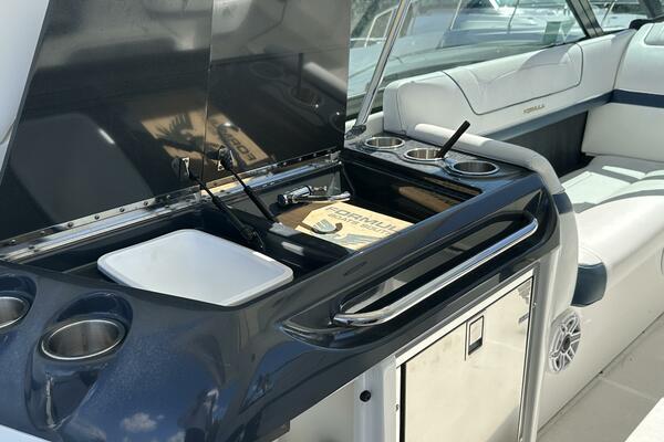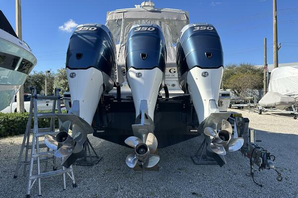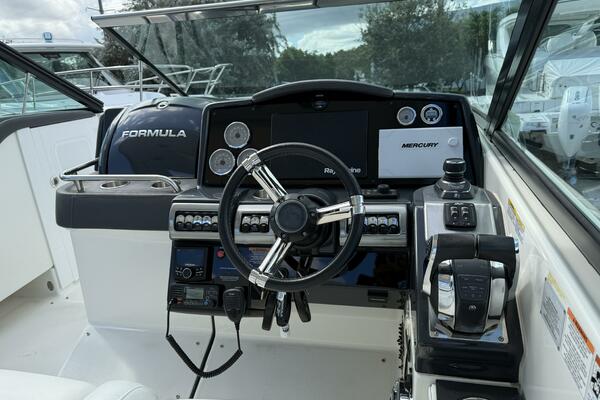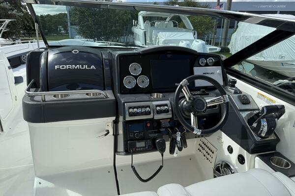 Introducing the stunning 2021 Formula 350 Crossover Bowrider OB, a remarkable blend of luxury and performance. With an impressive overall length of nearly 38 feet, this bowrider features a sleek fiberglass hull designed in a deep Vee shape, ensuring a smooth and stable ride on the water. Powered by three robust Mercury Verado 350 outboard engines, delivering a total of 1,050 horsepower, this vessel promises exhilarating speed and agility. The advanced joystick control enhances maneuverability, making it a breeze to navigate in any conditions. Inside, the boat offers a well-appointed cabin and head, providing comfort for day trips or weekend getaways. The thoughtful design and spacious layout make it perfect for entertaining guests or enjoying family outings. Experience the thrill of the open water with the Formula 350 Crossover Bowrider, where style meets performance in every detail.