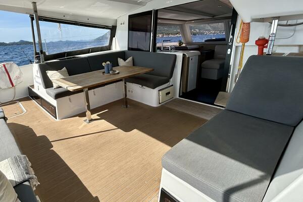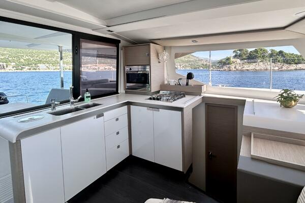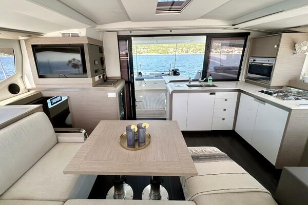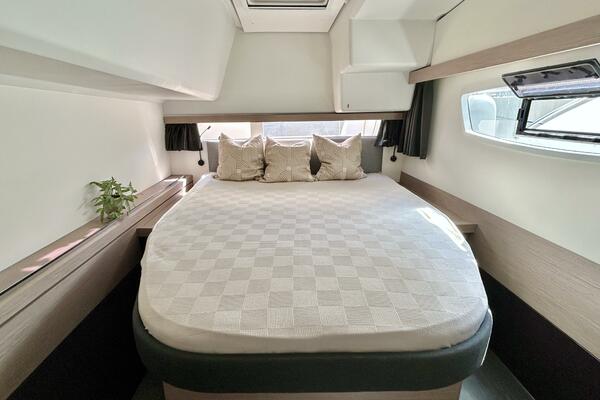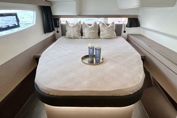 Designed for both comfort and performance, the Isla 40 is renowned for her sporty yet elegant lines, with inverted bows that mirror the styling of larger Fountaine Pajot models such as the Elba 45 and new 41. This owner’s (maestro) version maximises living space, featuring three generous cabins, including a private owner’s hull with a spacious ensuite, plus two well-appointed guest cabins sharing a second bathroom.