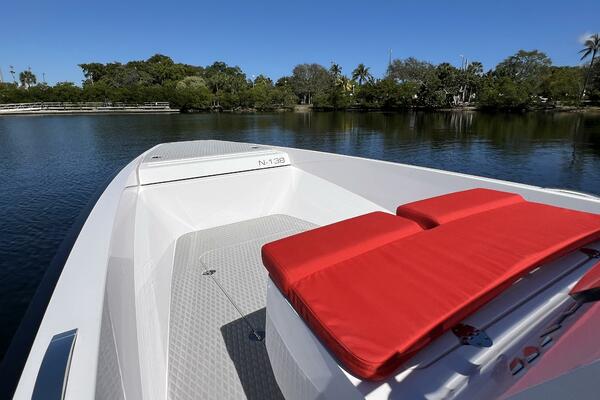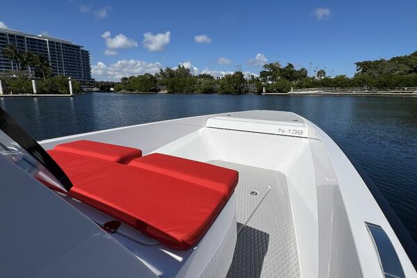 The immersed cockpit design allows us to create an open boat with an extremely low center of gravity. By forcing weight down in the boat, we gain balance, stability, and safety. Not only will all passengers enjoy stable movement around the craft, but more importantly the driver will have an easier job keeping the hull in balance in the rough. The immersed cockpit floor also reduces turbulence around the helm and optimizes the driver’s position, without the need for a dominant console. It’s a design that ticks all the boxes, providing comfort, safety, and aesthetical satisfaction.
