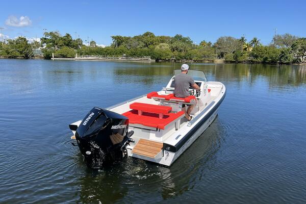 Fitted with 225hp Mercury O/B for optimum performance and economy, options include GPS potter, stereo, security control, extended seating and more. Available to view immediately in showroom, Fort Lauderdale.