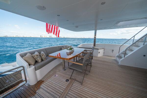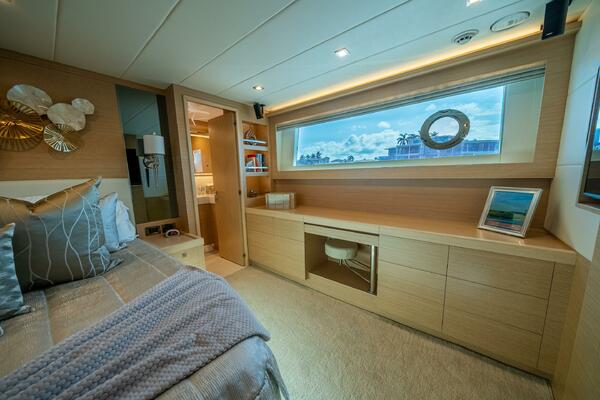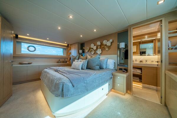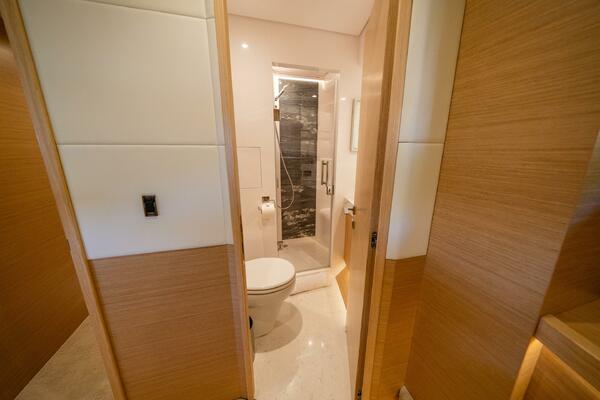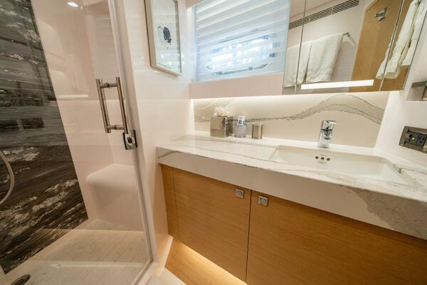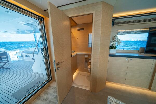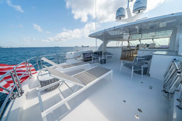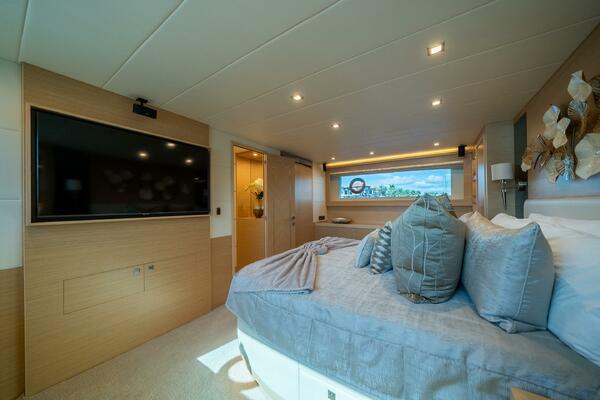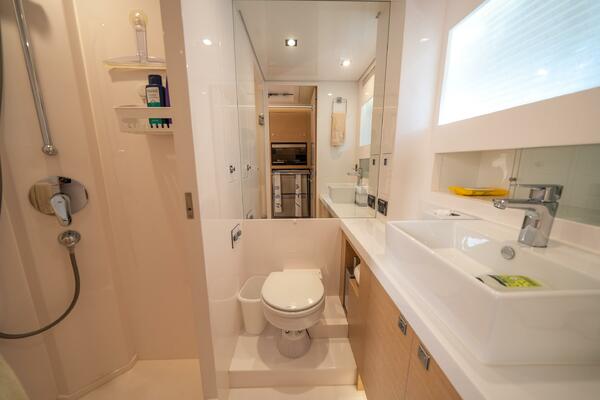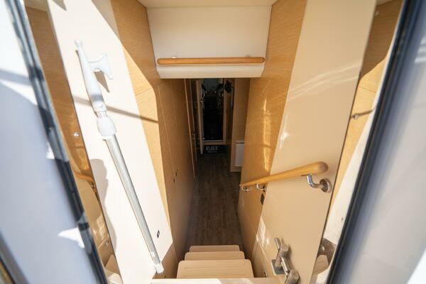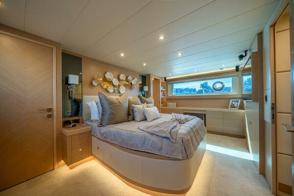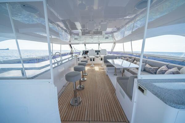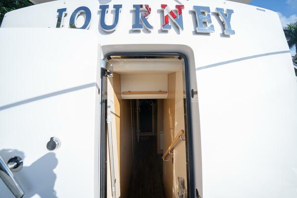 Stepping aboard JOURNEY, you'll immediately feel the spaciousness, reminiscent of a larger yacht. This is evident in the headroom on every deck, from the aft deck to the sundeck.
